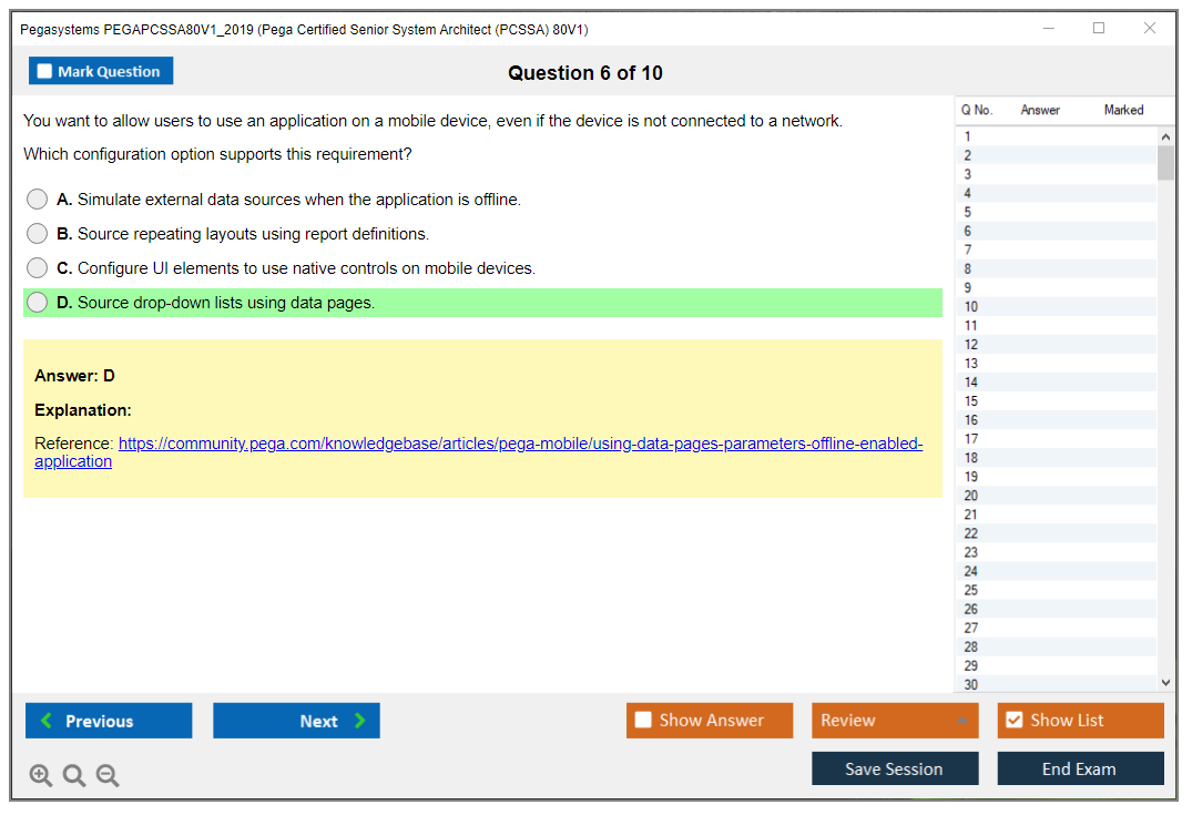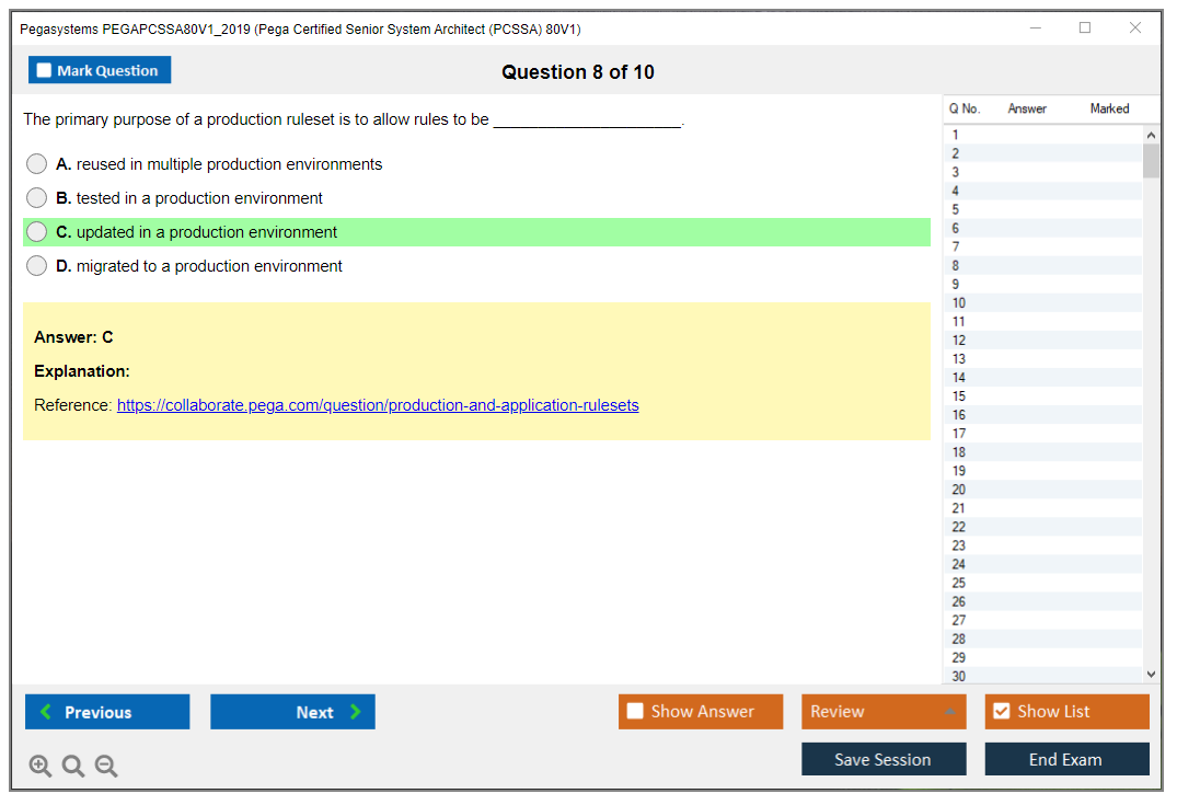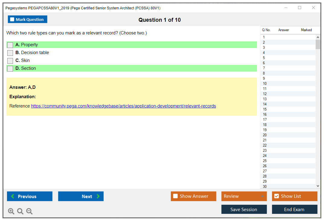 Note: Pegasystems PEGAPCSSA80V1_2019 (Pega Certified Senior System Architect (PCSSA) 80V1) will not receive any new updates.