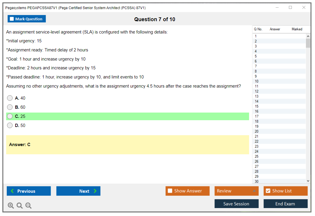 The Pegasystems PEGAPCSSA87V1 exam is intended for individuals who have experience in developing Pega applications and are looking to validate their advanced skills. It covers a variety of topics related to Pega's platform and its application in real-world scenarios.