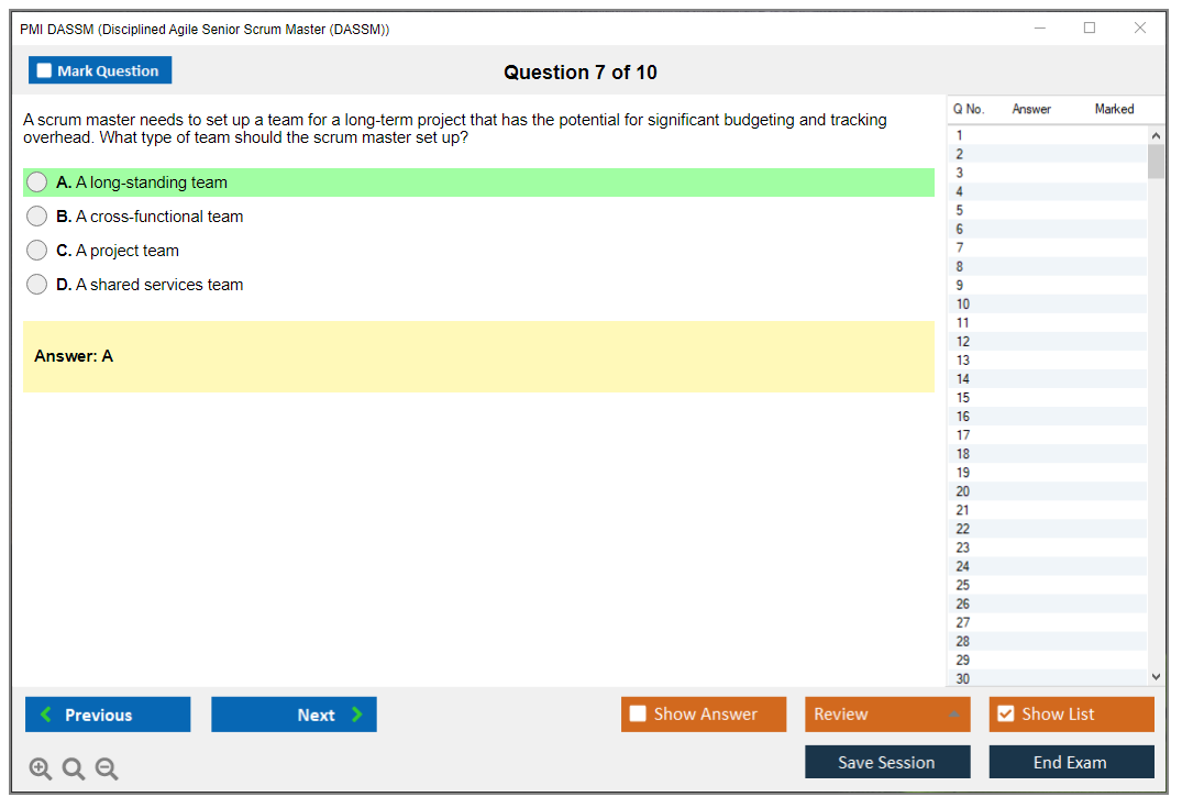 The PMI Disciplined Agile Senior Scrum Master (DASSM) Exam is an advanced certification exam offered by the Project Management Institute (PMI) for experienced Agile practitioners. It validates an individual's ability to lead Agile teams and projects using the Disciplined Agile toolkit.