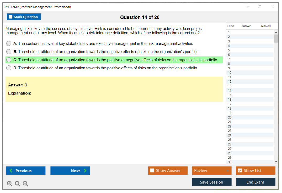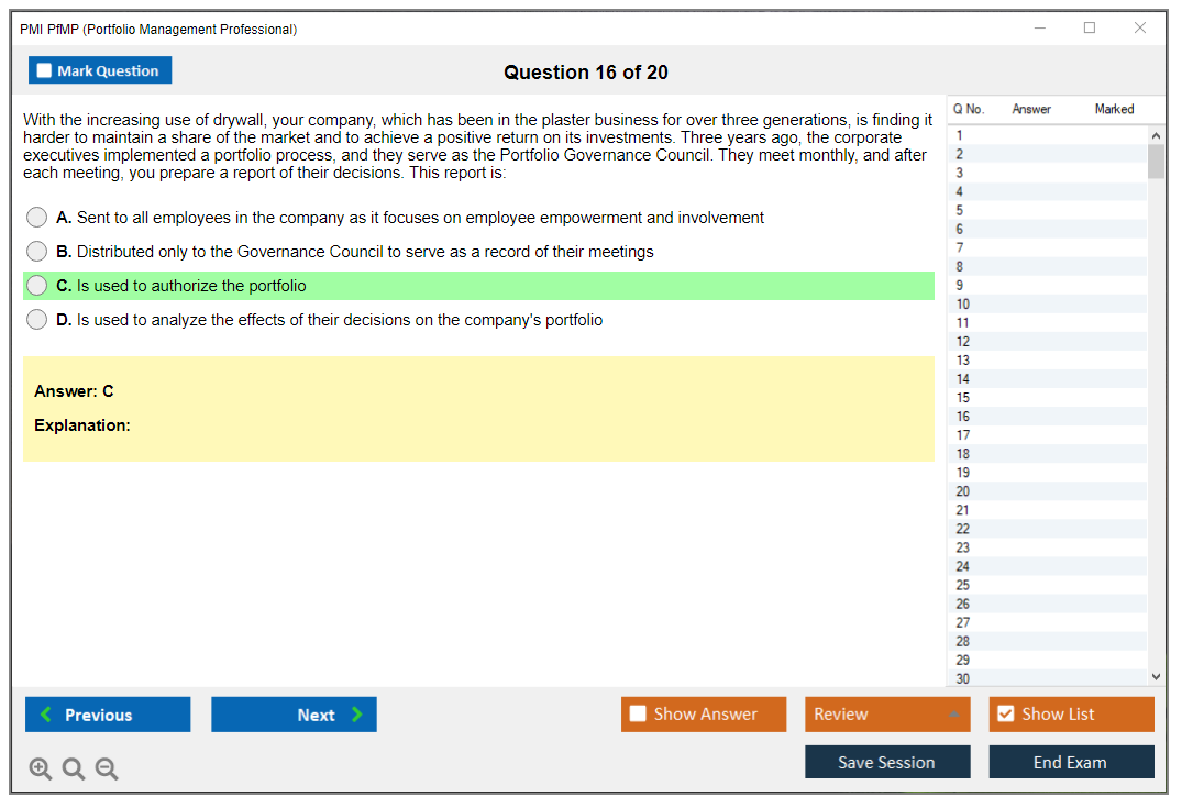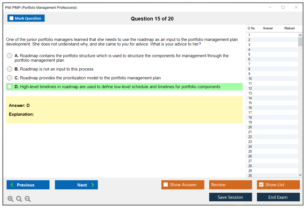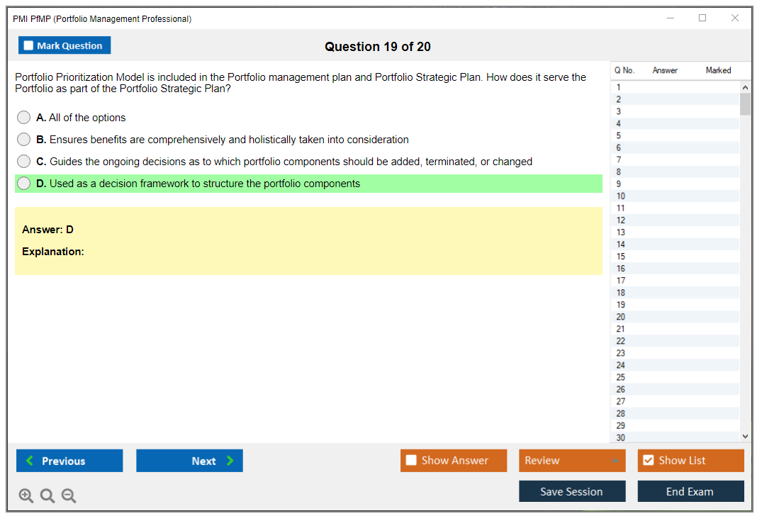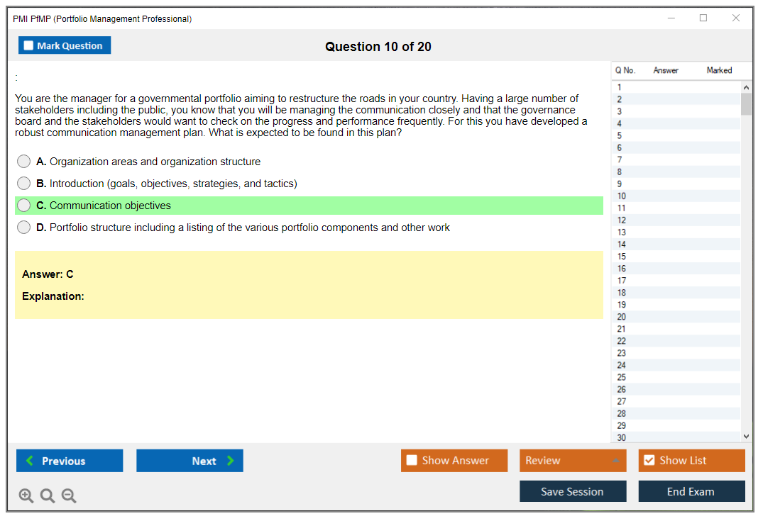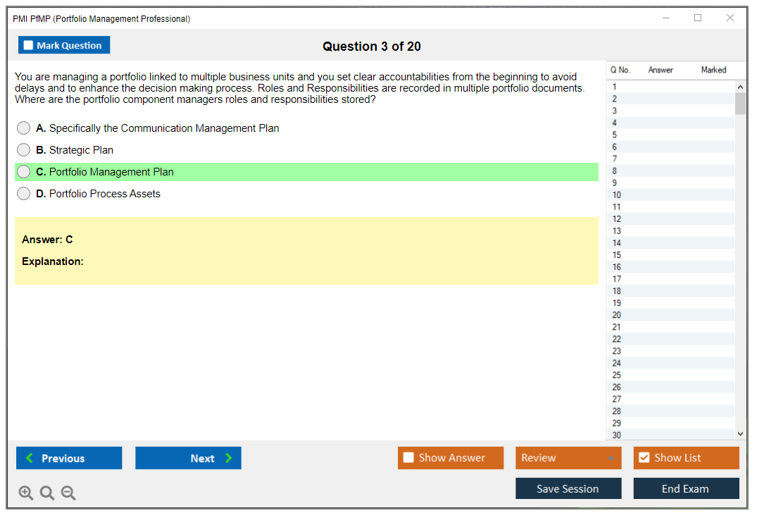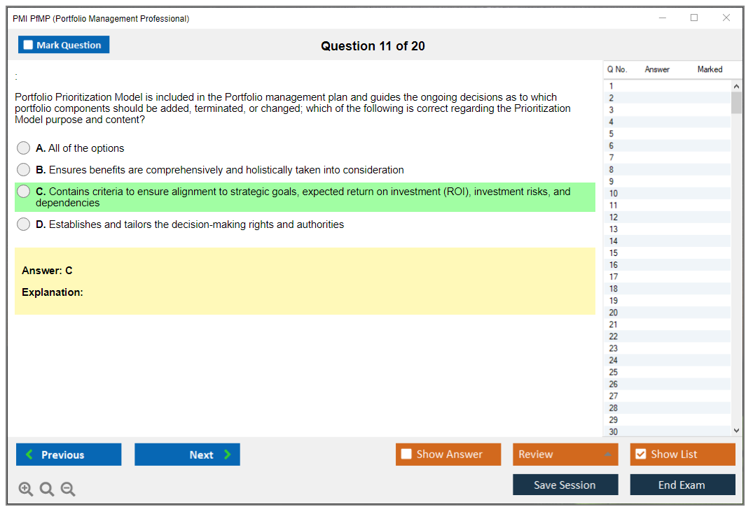 The PMI Portfolio Management Professional (PfMP) exam is a globally recognized certification that validates an individual's advanced competency in the coordinated management of one or more portfolios to achieve organizational objectives. The certification is designed for experienced portfolio managers who are responsible for the success of one or more portfolios within an organization.