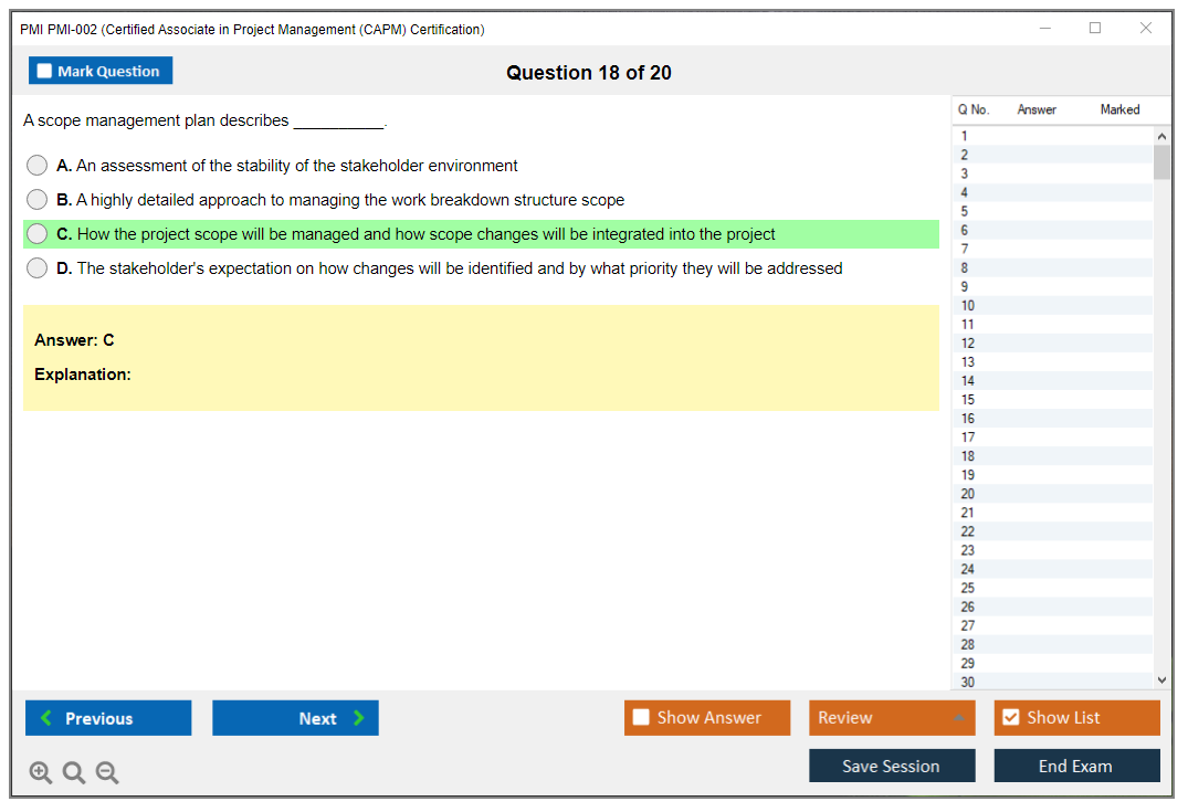The PMI PMI-002 Exam is a credentialing exam for the Certified Associate in Project Management (CAPM) certification. It tests candidates on their knowledge of project management principles as outlined in the PMBOK Guide (Project Management Body of Knowledge).