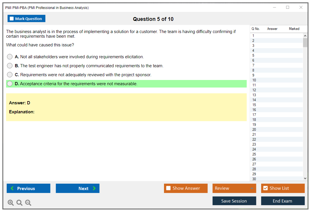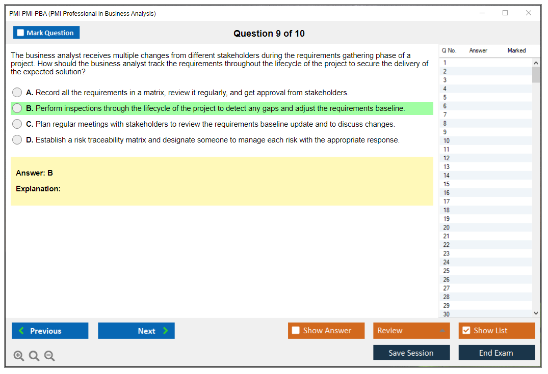 The PMI Professional in Business Analysis (PMI-PBA) exam is designed to assess the knowledge and skills of business analysis professionals. This certification is particularly relevant for those who work with project teams and manage requirements or product development. It covers a wide range of business analysis topics, including needs assessment, planning, analysis, traceability, and monitoring.