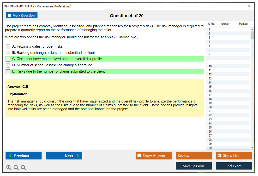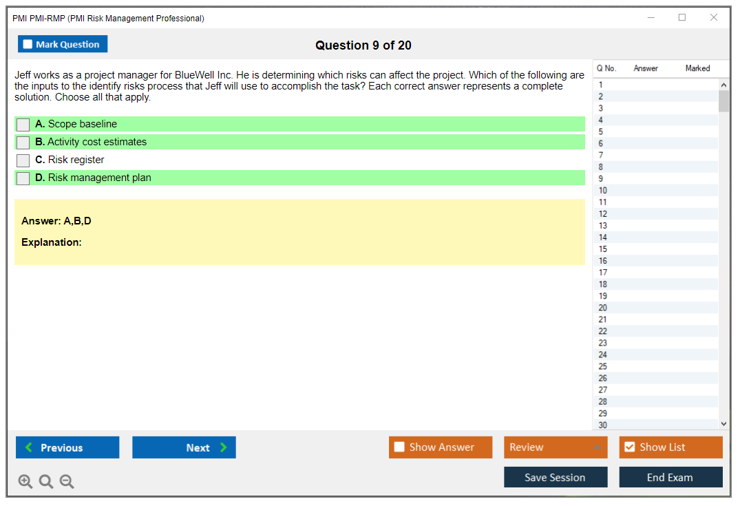 What are the Sample Questions of PMI PMI-RMP Exam?