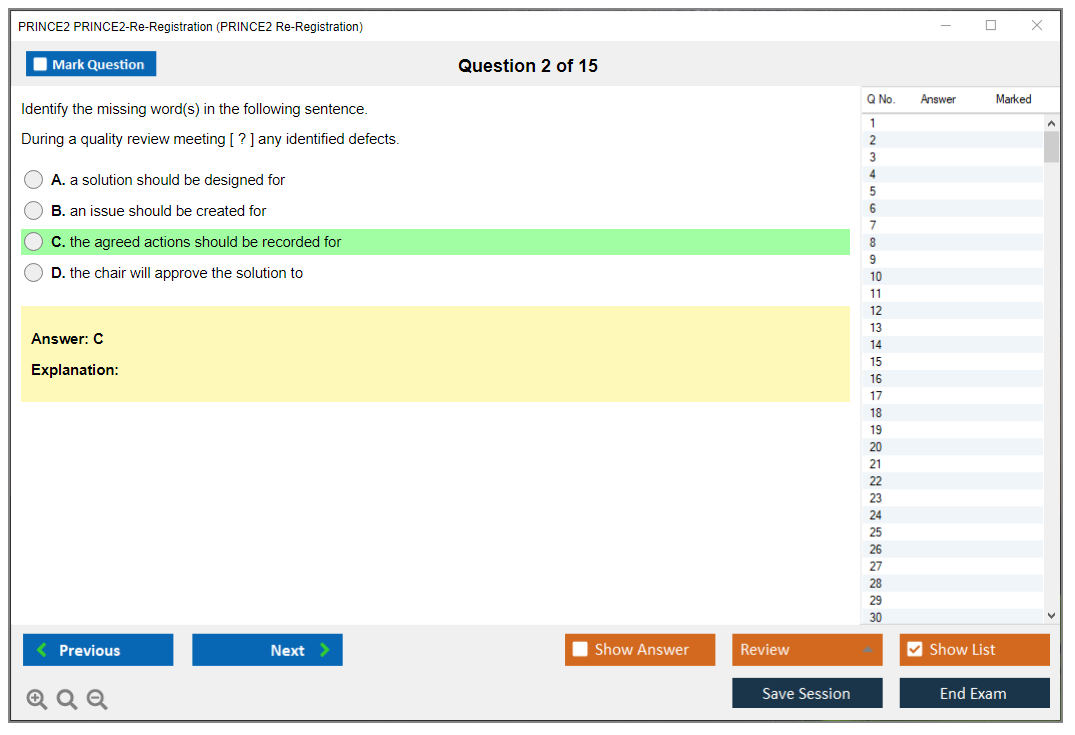 What is the Question Format of PRINCE2 PRINCE2-Re-Registration Exam?