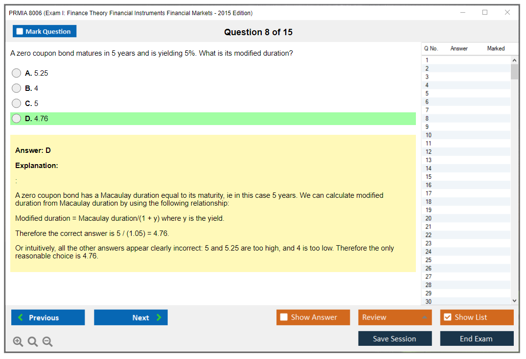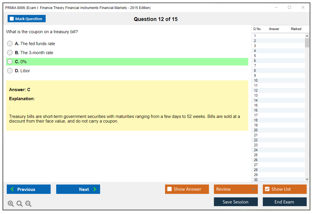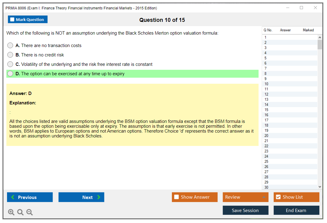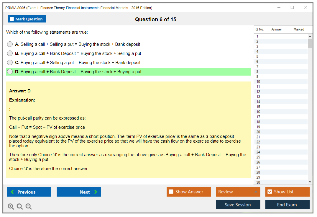 The PRMIA 8006 Exam is designed to test the candidate's knowledge in finance theory, financial instruments, and financial markets. It is one of the four exams required to achieve the Professional Risk Manager (PRM) designation.