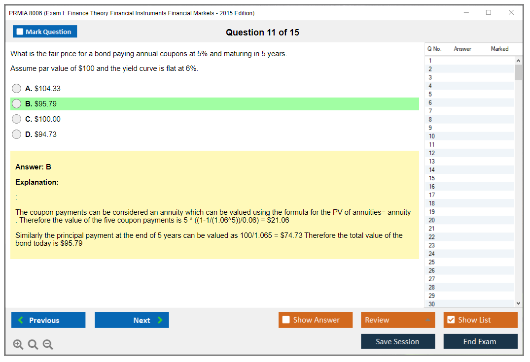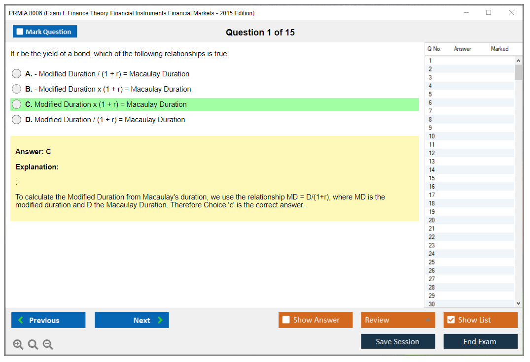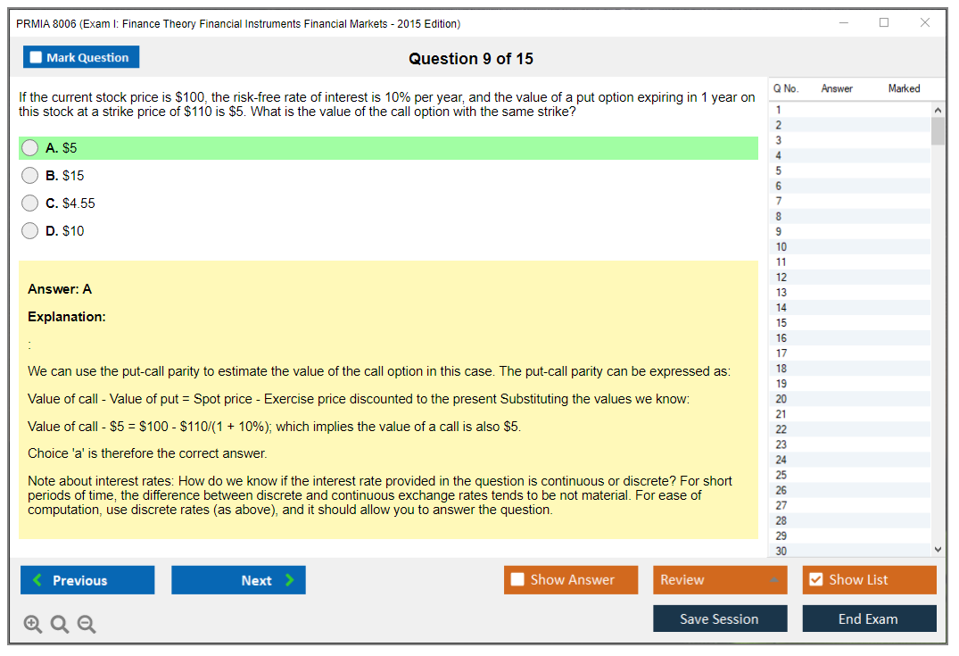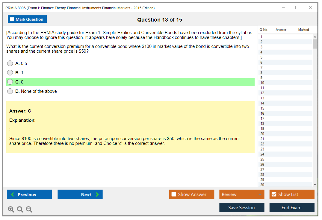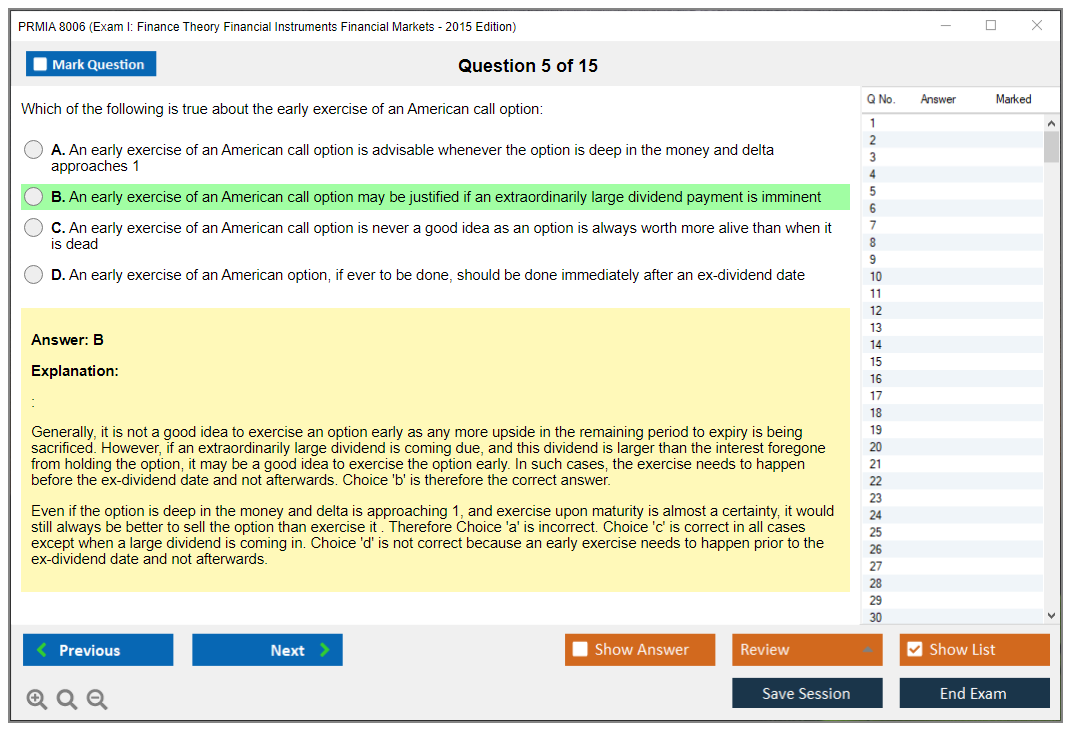 The PRMIA 8006 Exam is designed to test the candidate's knowledge in finance theory, financial instruments, and financial markets. It is one of the four exams required to achieve the Professional Risk Manager (PRM) designation.