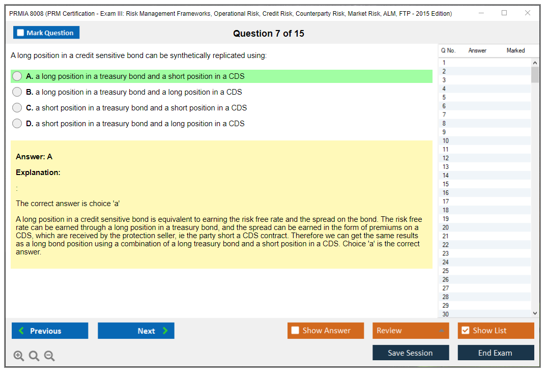 The PRMIA 8008 (PRM Certification - Exam III: Risk Management Frameworks, Operational Risk, Credit Risk, Counterparty Risk, Market Risk, ALM, FTP - 2015 Edition) is a certification exam designed to test the knowledge and skills of professionals in various risk management domains. It covers a wide range of topics including risk management frameworks, operational risk, credit risk, counterparty risk, market risk, asset-liability management (ALM), and funds transfer pricing (FTP).