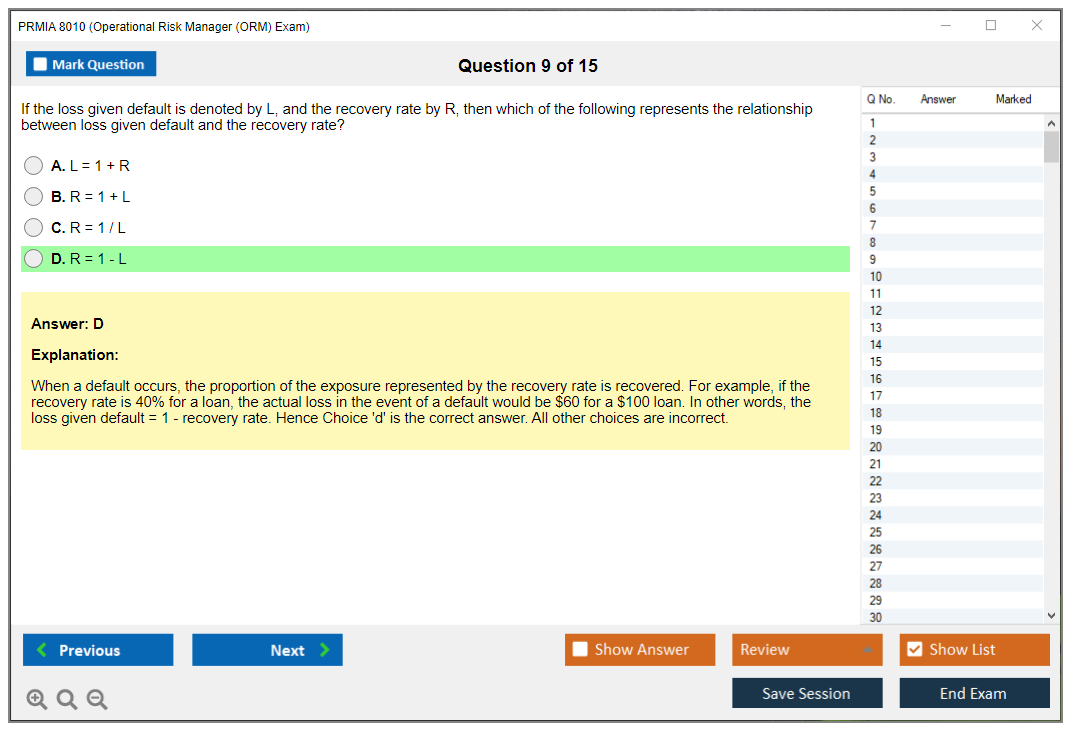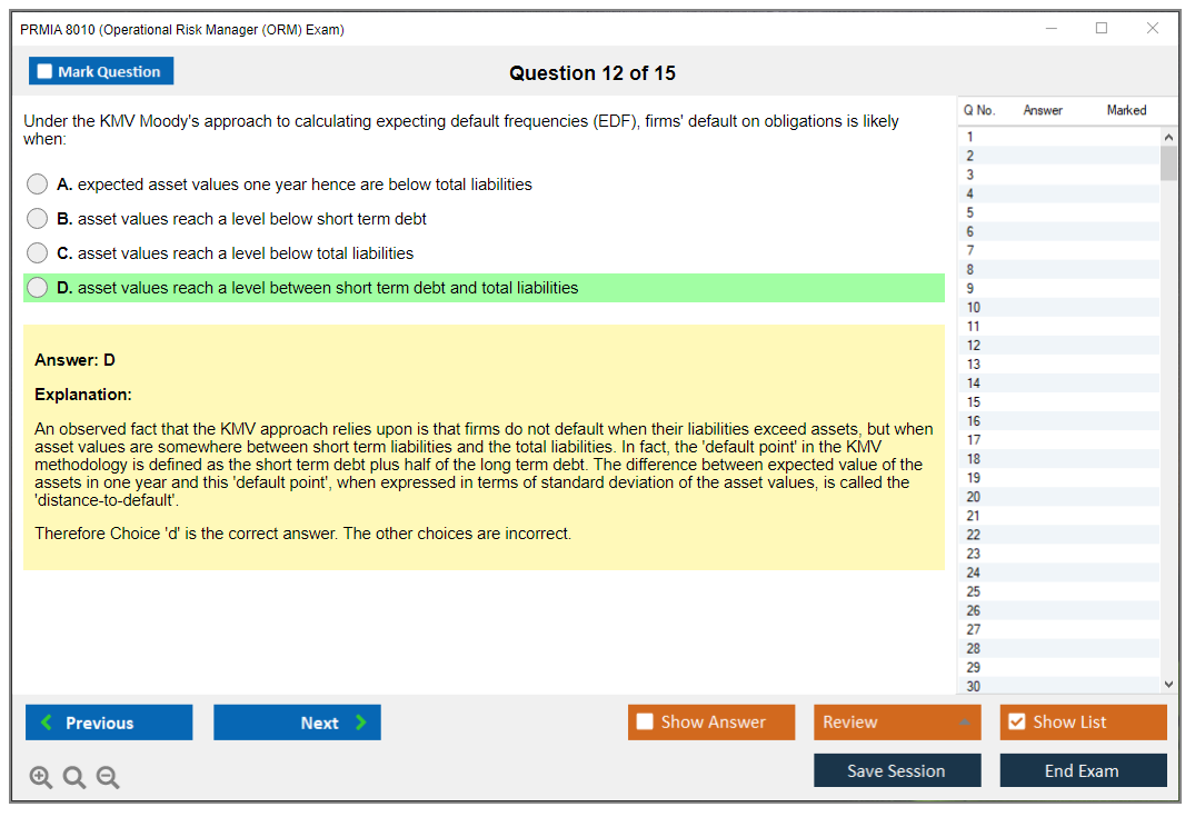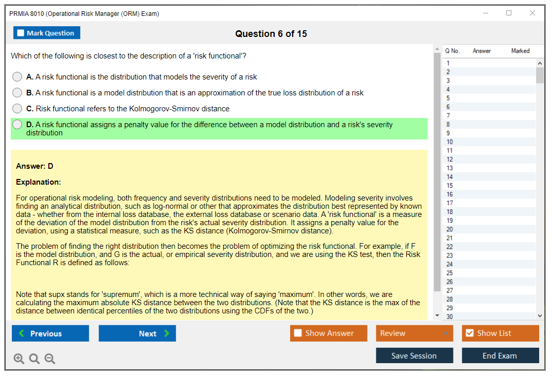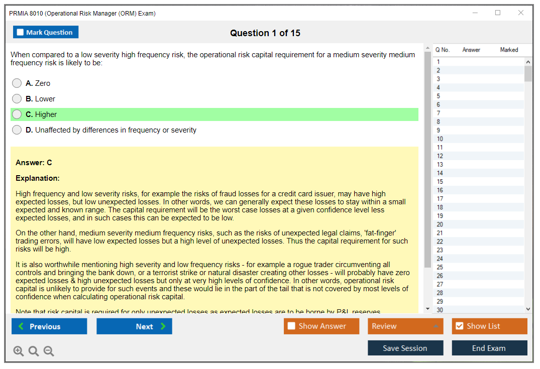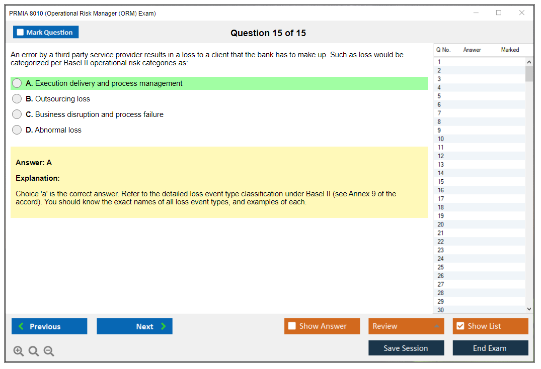 The PRMIA 8010 Operational Risk Manager (ORM) Exam is a professional certification designed to validate the knowledge and skills of individuals in the field of operational risk management. It covers various aspects of risk management including risk identification, assessment, monitoring, and mitigation.