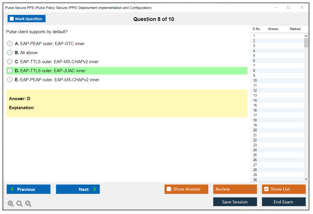 The Pulse Secure PPS (Pulse Policy Secure) Deployment Implementation and Configuration Exam is designed to validate the skills and knowledge required to deploy, implement, and configure Pulse Policy Secure solutions effectively.