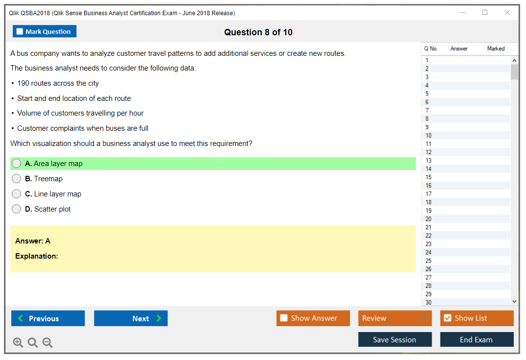 The Qlik QSBA2018 exam, also known as the Qlik Sense Business Analyst Certification Exam - June 2018 Release, is designed to measure your knowledge and skills in using Qlik Sense for business analysis. It validates your ability to interpret business requirements, design and develop applications, and analyze data using Qlik Sense.
