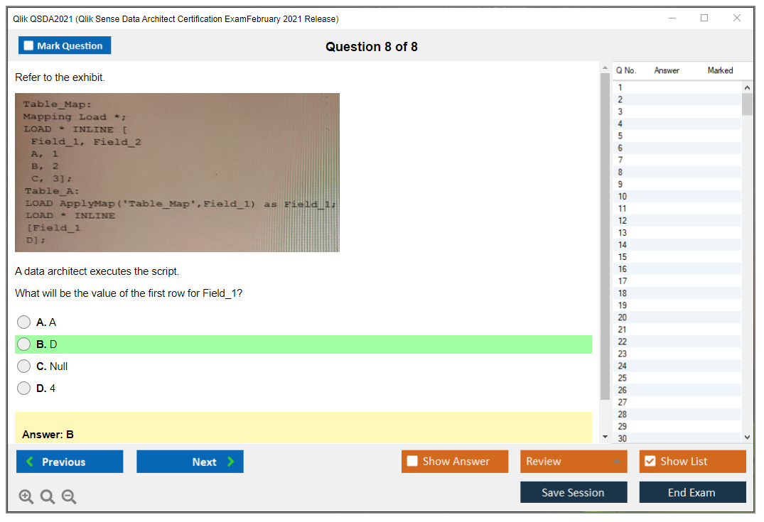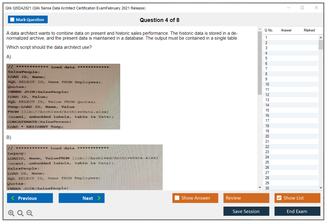 What are the Sample Questions of Qlik QSDA2021 Exam?