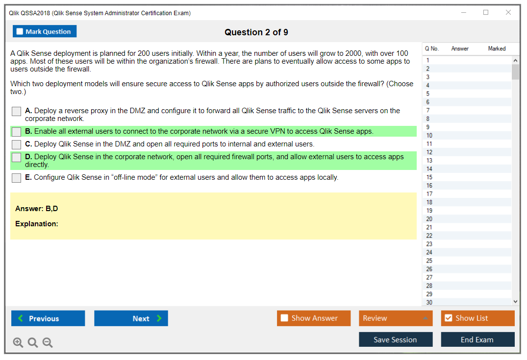 The Qlik QSSA2018 Exam is a certification exam for system administrators to demonstrate their expertise in managing Qlik Sense environments. It covers a variety of topics including installation, configuration, security, and troubleshooting.