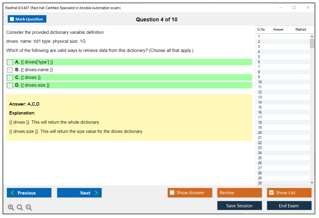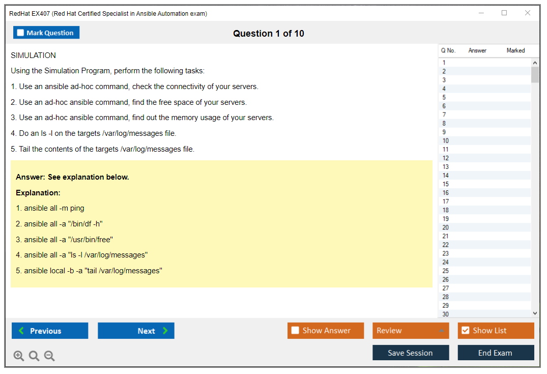 The question format of the RedHat EX407 exam is performance-based. You will be required to perform real-world tasks using Ansible, and your performance will be evaluated.