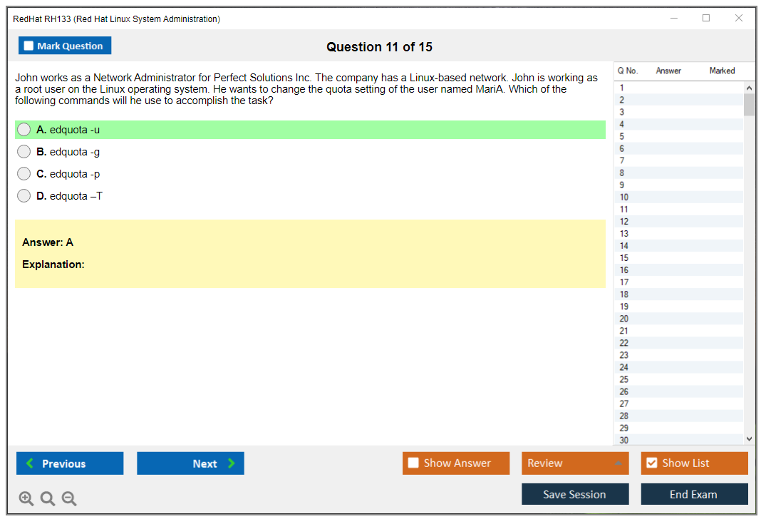 The RedHat RH133 (Red Hat Linux System Administration) Exam is designed for system administrators who want to demonstrate their skills in managing and administering Red Hat Enterprise Linux environments. The exam tests the candidate's ability to perform essential tasks in Red Hat Enterprise Linux, including installation, configuration, and troubleshooting.