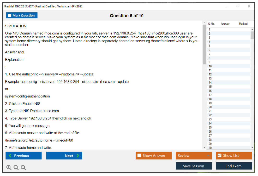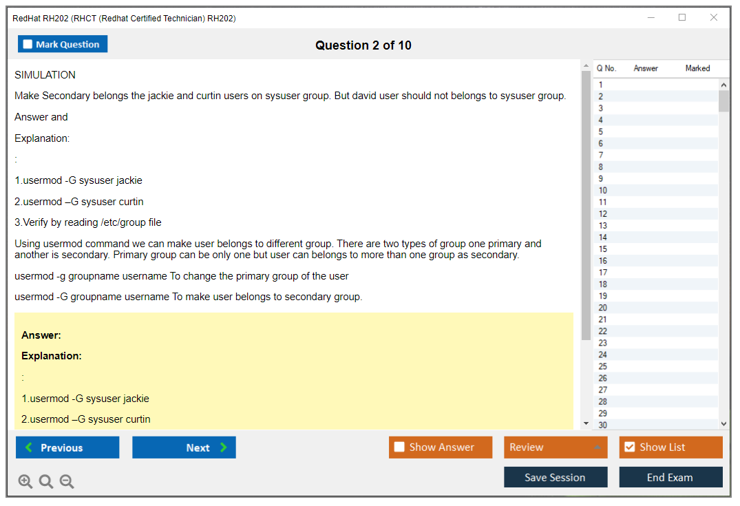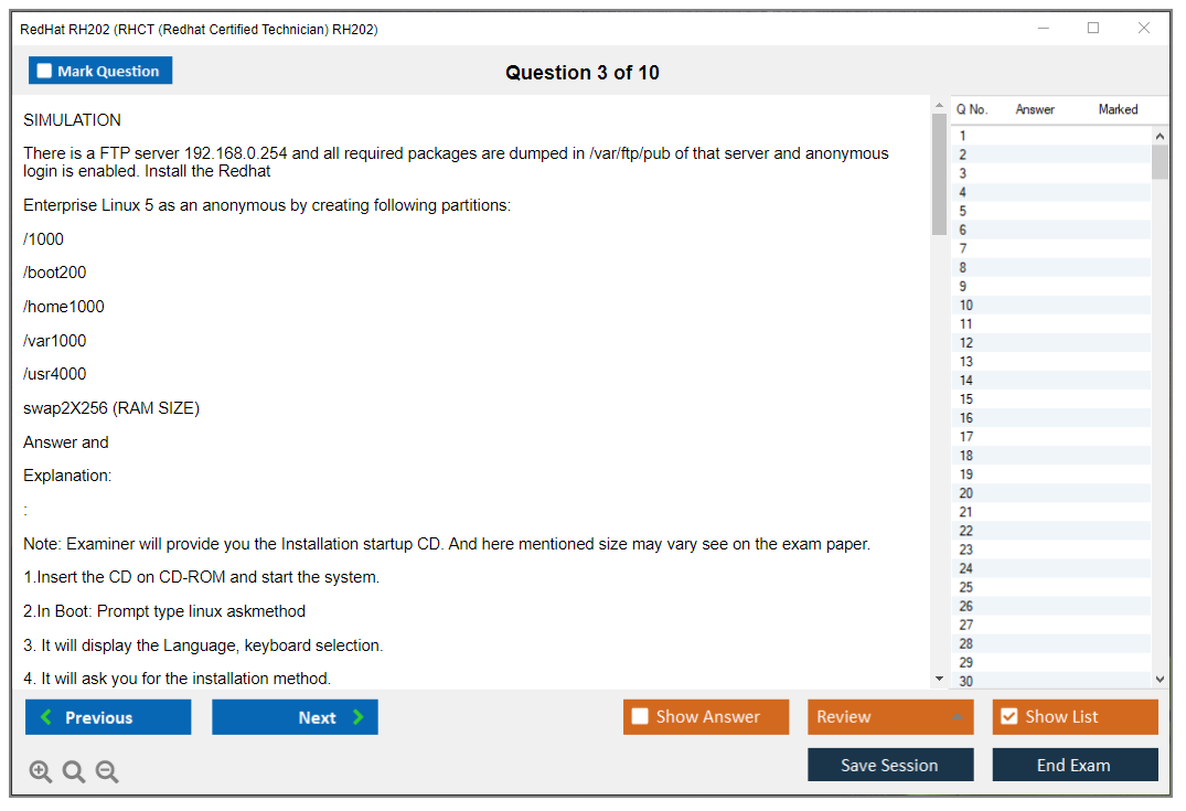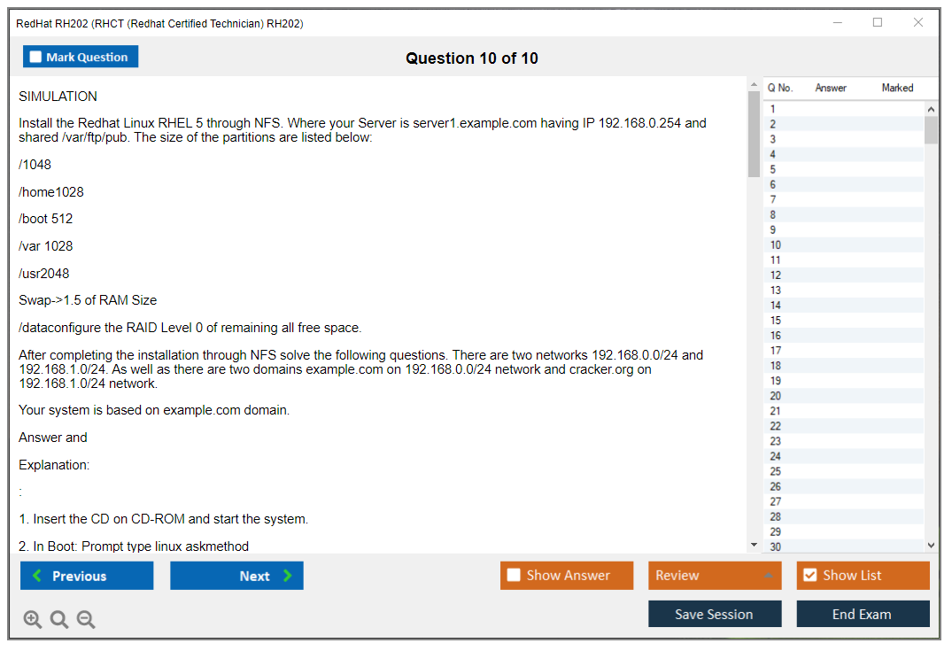 Sample questions for the RedHat RH202 exam are not typically provided, as it is a performance-based exam. However, candidates can prepare by practicing real-world tasks on Red Hat Enterprise Linux systems.