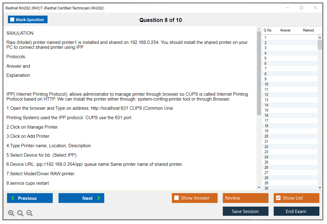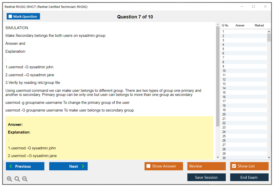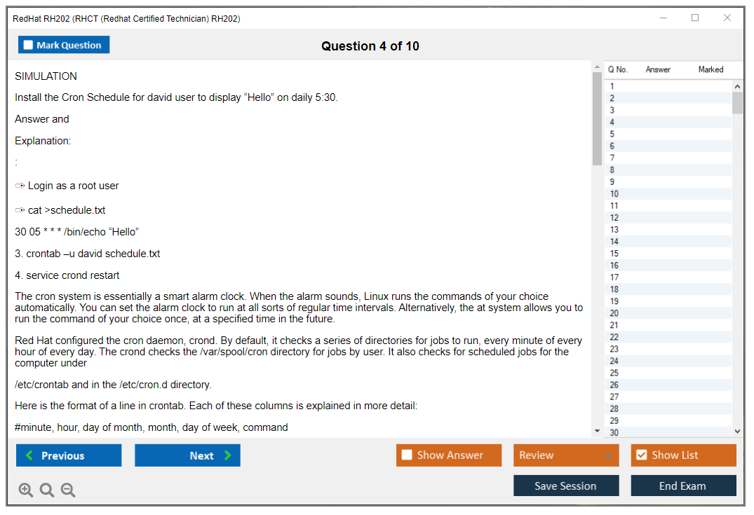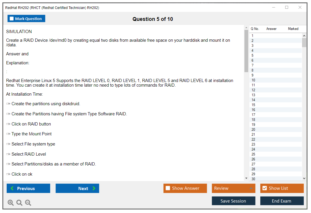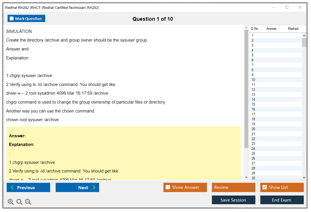 Sample questions for the RedHat RH202 exam are not typically provided, as it is a performance-based exam. However, candidates can prepare by practicing real-world tasks on Red Hat Enterprise Linux systems.