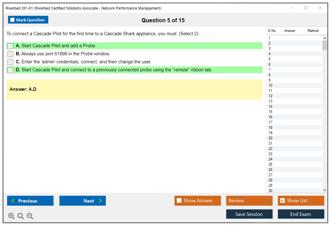 The question format of the Riverbed 201-01 Exam includes multiple-choice, multiple-response, and scenario-based questions.