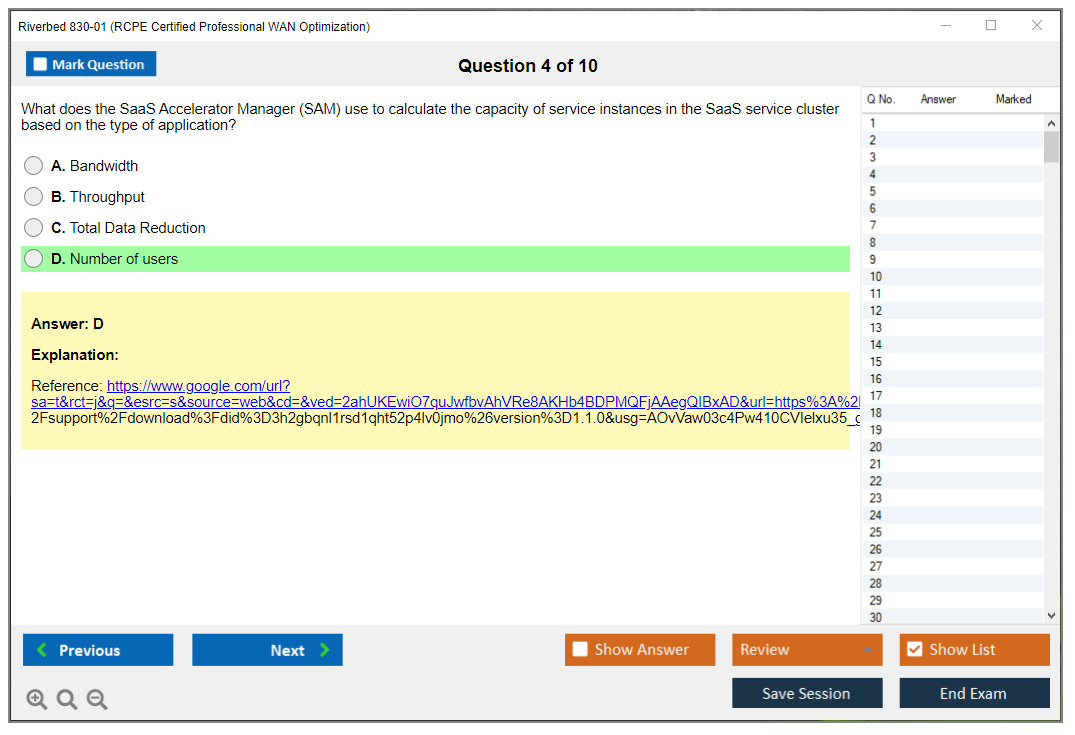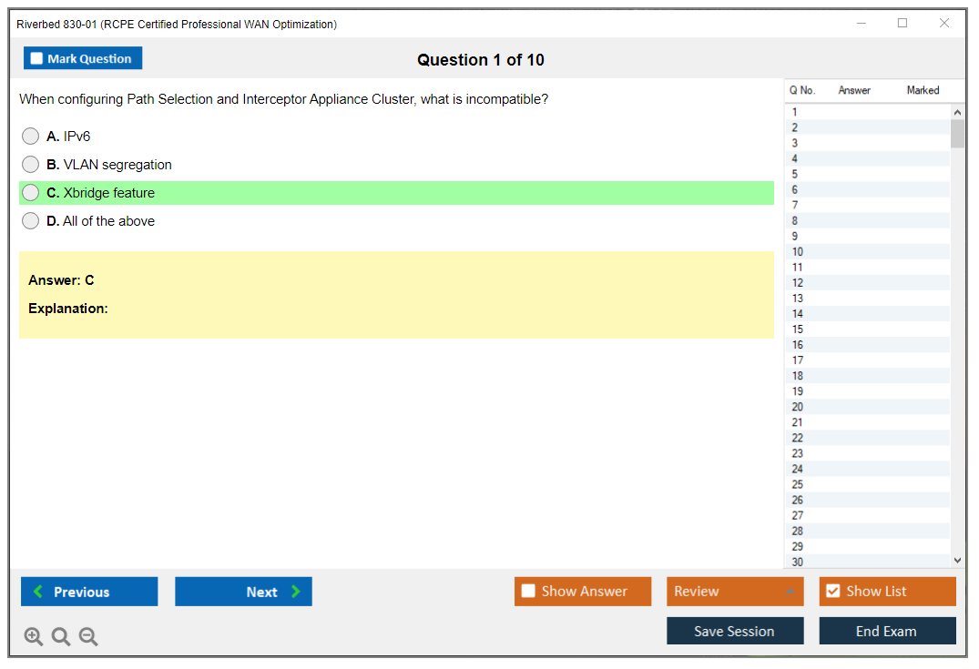 The question format of the Riverbed 830-01 Exam includes multiple-choice questions, scenario-based questions, and possibly simulations.