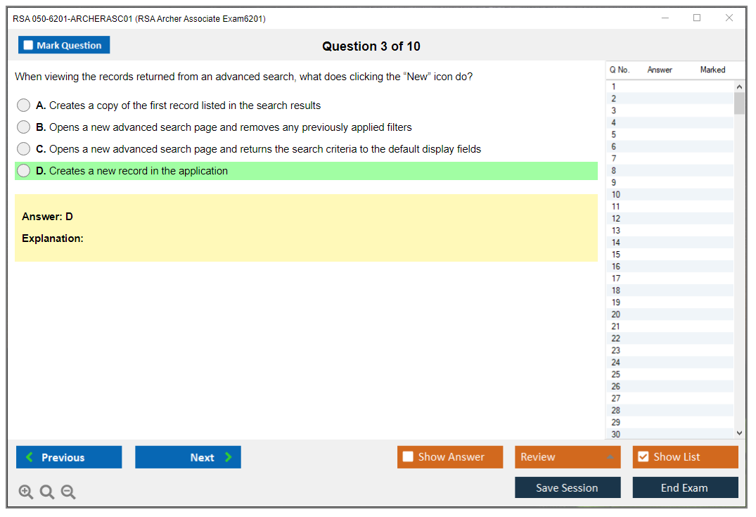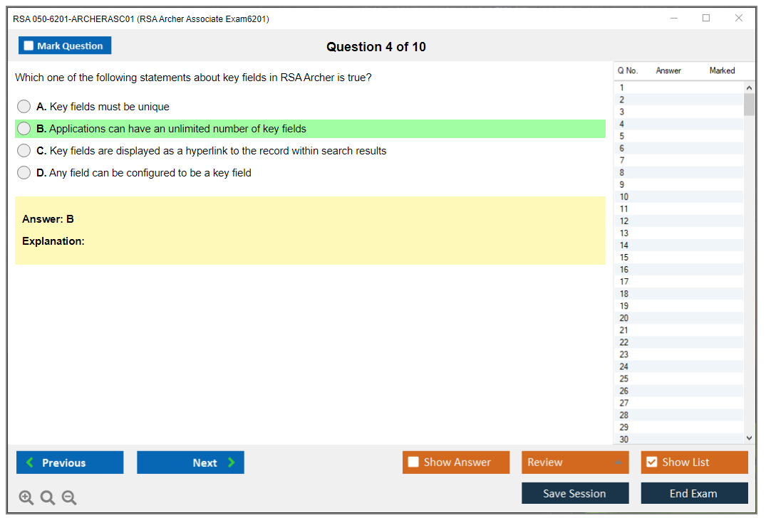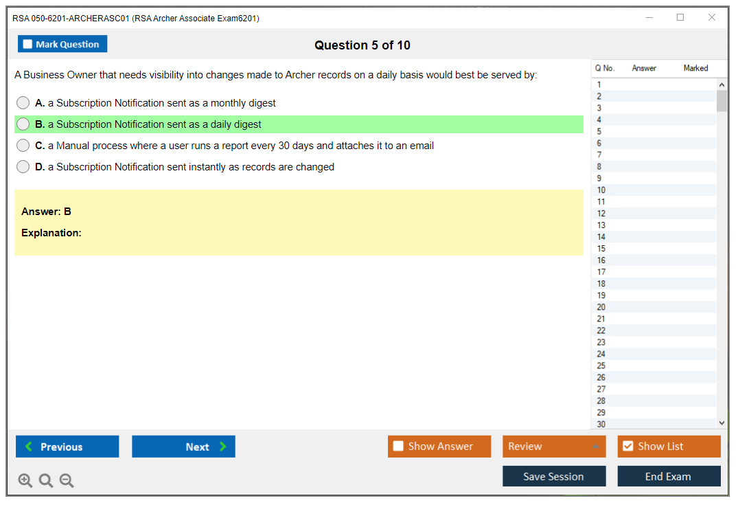 The RSA 050-6201-ARCHERASC01 Exam assesses the fundamental abilities of professionals in using RSA Archer, a leading governance, risk, and compliance (GRC) platform. This exam validates the candidate's proficiency in navigating and utilizing the RSA Archer suite.