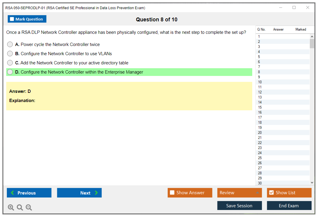 The RSA 050-SEPRODLP-01 exam is aimed at IT professionals who want to demonstrate their expertise in implementing and managing RSA's data loss prevention solutions.