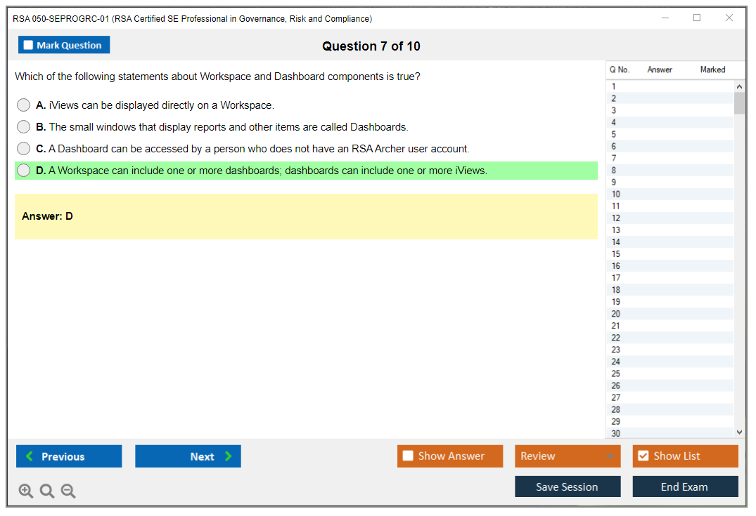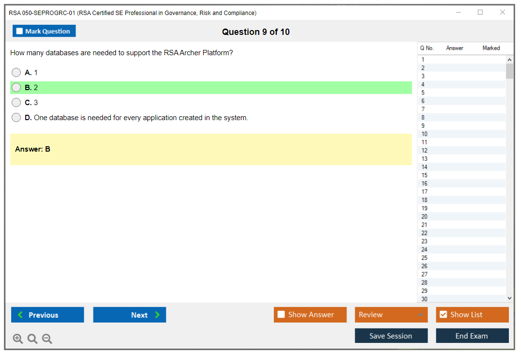 There are no formal prerequisites for the RSA 050-SEPROGRC-01 Exam, but having relevant experience and training is highly recommended.