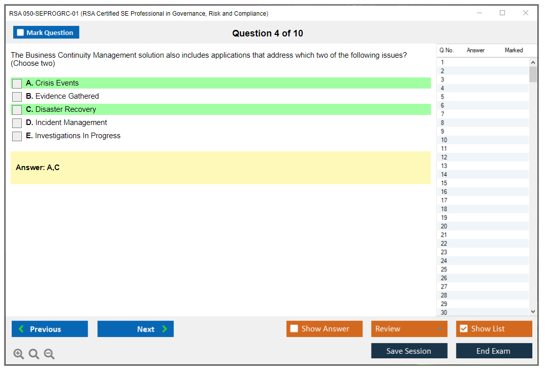 The RSA 050-SEPROGRC-01 (RSA Certified SE Professional in Governance, Risk and Compliance) Exam is a certification exam designed for professionals who want to validate their knowledge and skills in governance, risk management, and compliance using RSA Archer solutions.