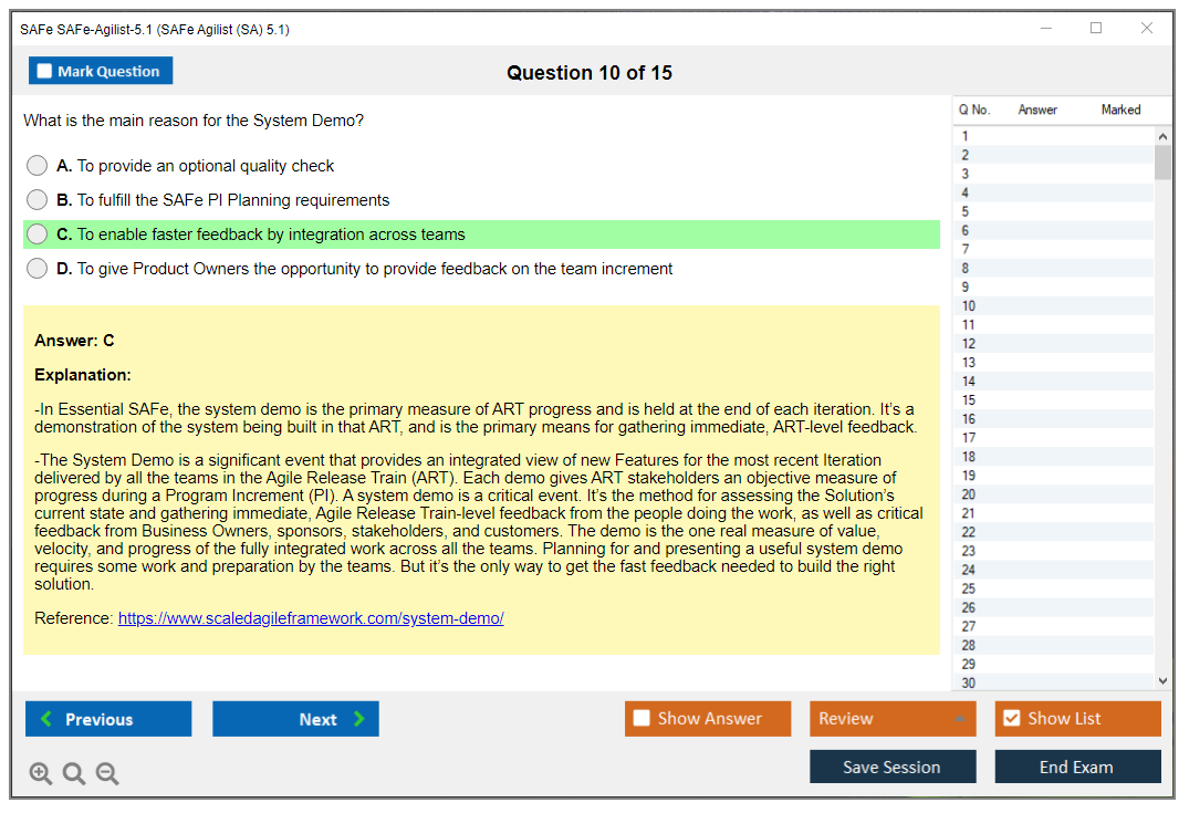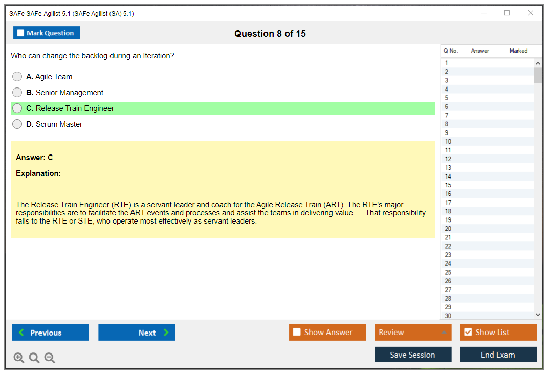 The SAFe Agilist (SA) 5.1 certification exam is designed to validate an individual's knowledge and ability to apply the Scaled Agile Framework (SAFe) in a business context. The exam covers various aspects of lean-agile principles, practices, and roles necessary for leading a Lean-Agile enterprise transformation by leveraging SAFe.
