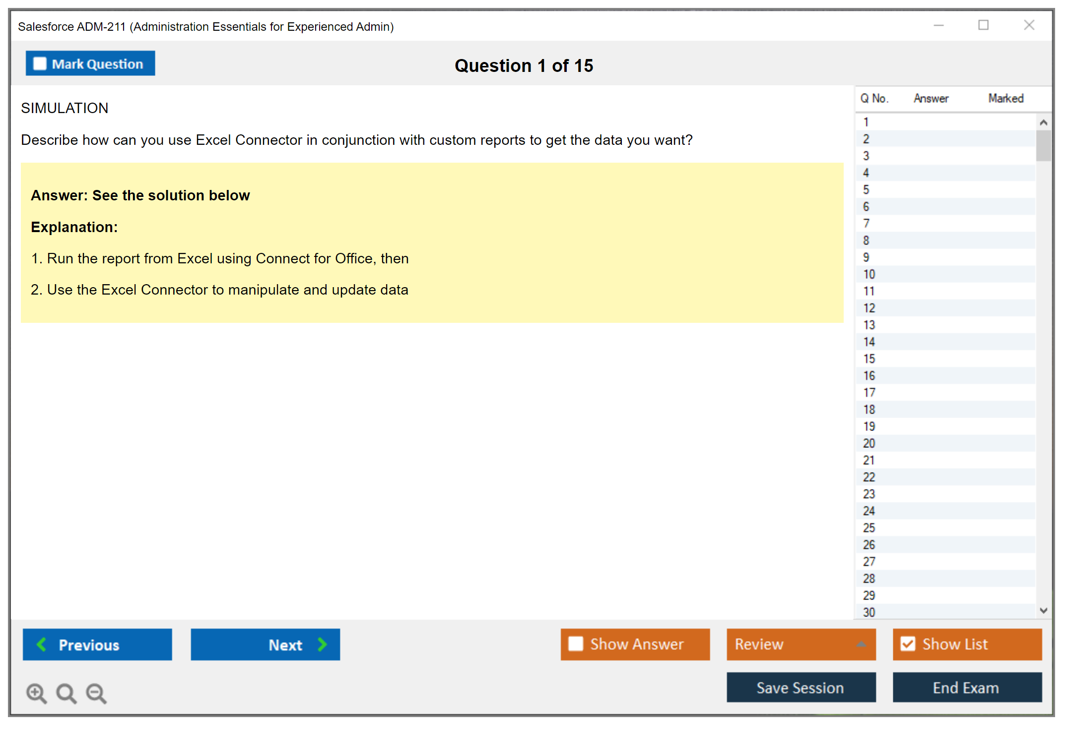 There are no formal prerequisites for the Salesforce ADM-211 Exam, but it is recommended that candidates have a solid understanding of Salesforce administration and have completed the Salesforce Administration Essentials for Experienced Admins (ADM-211) course.