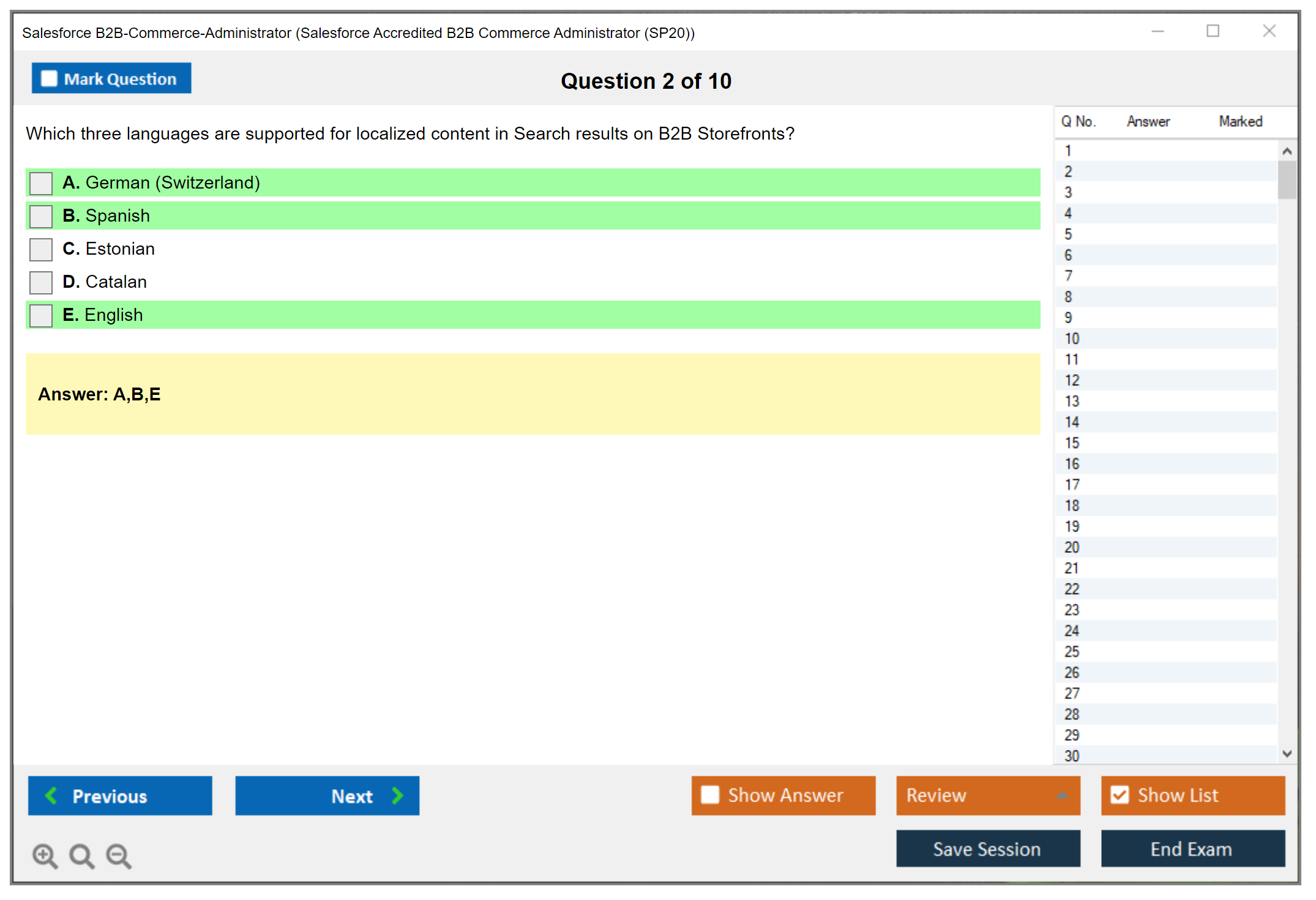 The Salesforce B2B-Commerce-Administrator Exam is offered in English.