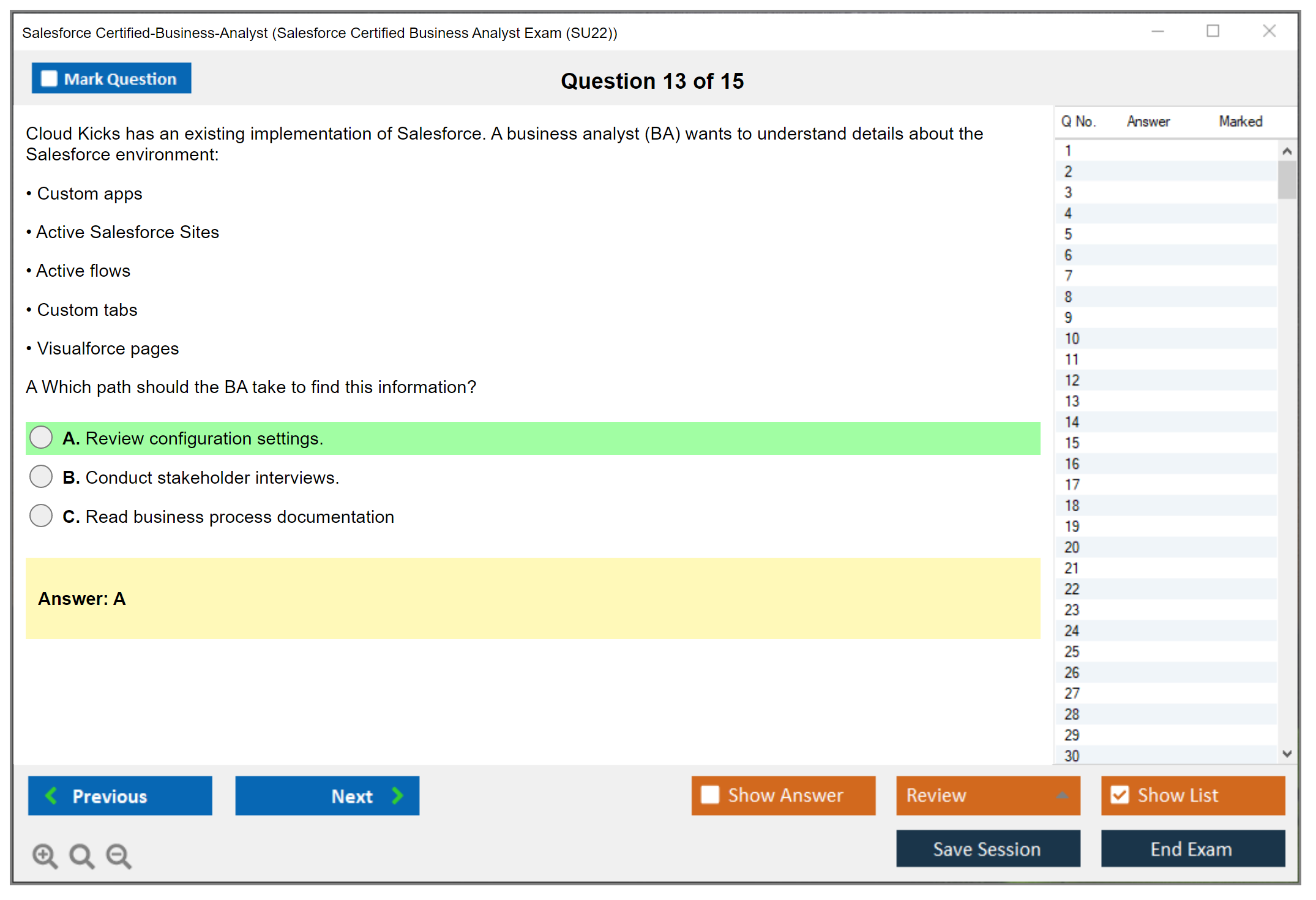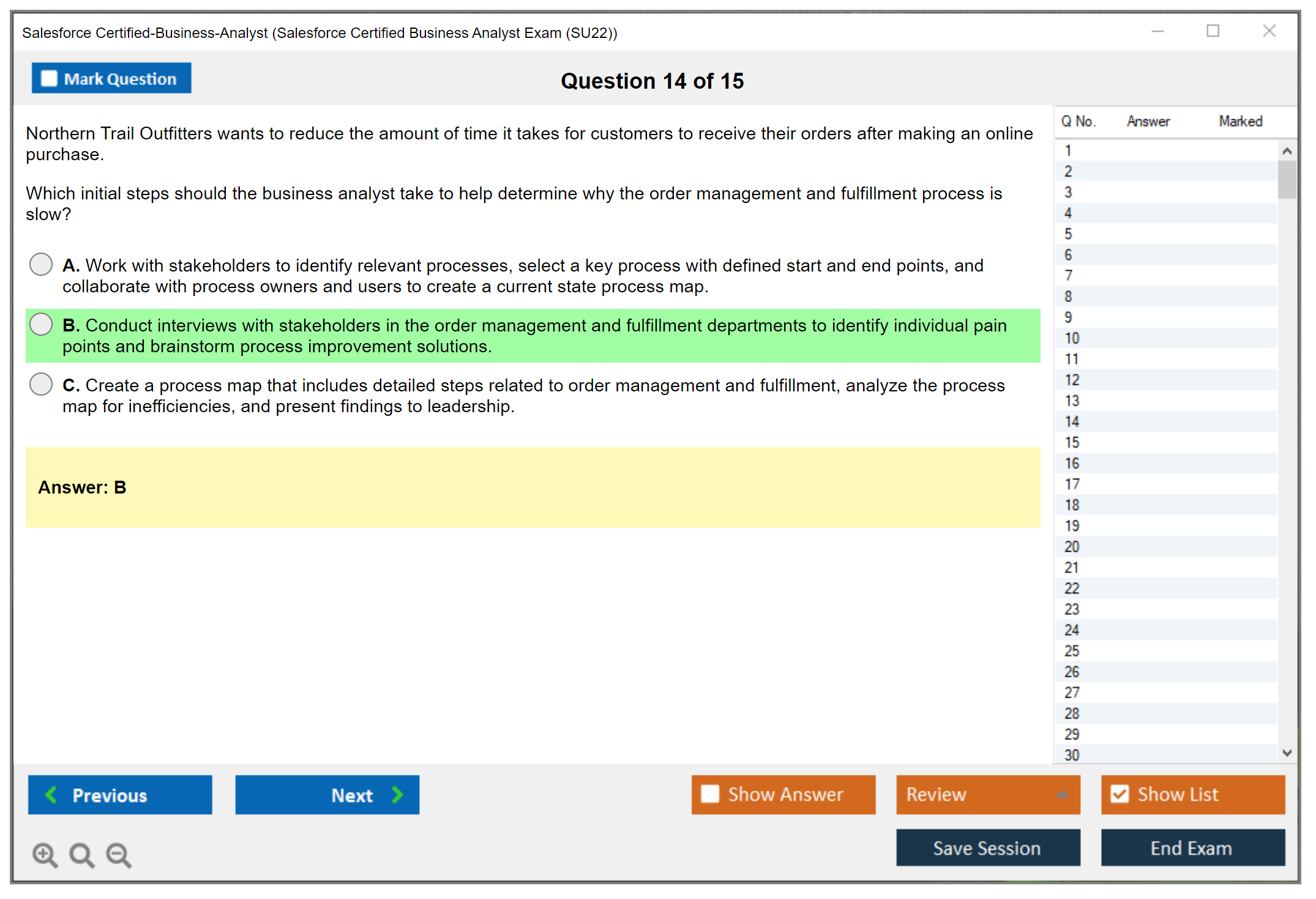The Salesforce Certified-Business-Analyst (Salesforce Certified Business Analyst Exam (SP24)) is a certification exam designed for professionals who seek to validate their expertise in business analysis within the Salesforce ecosystem. It focuses on the skills and knowledge necessary to effectively analyze business needs, streamline processes, and support organizational goals using Salesforce solutions.