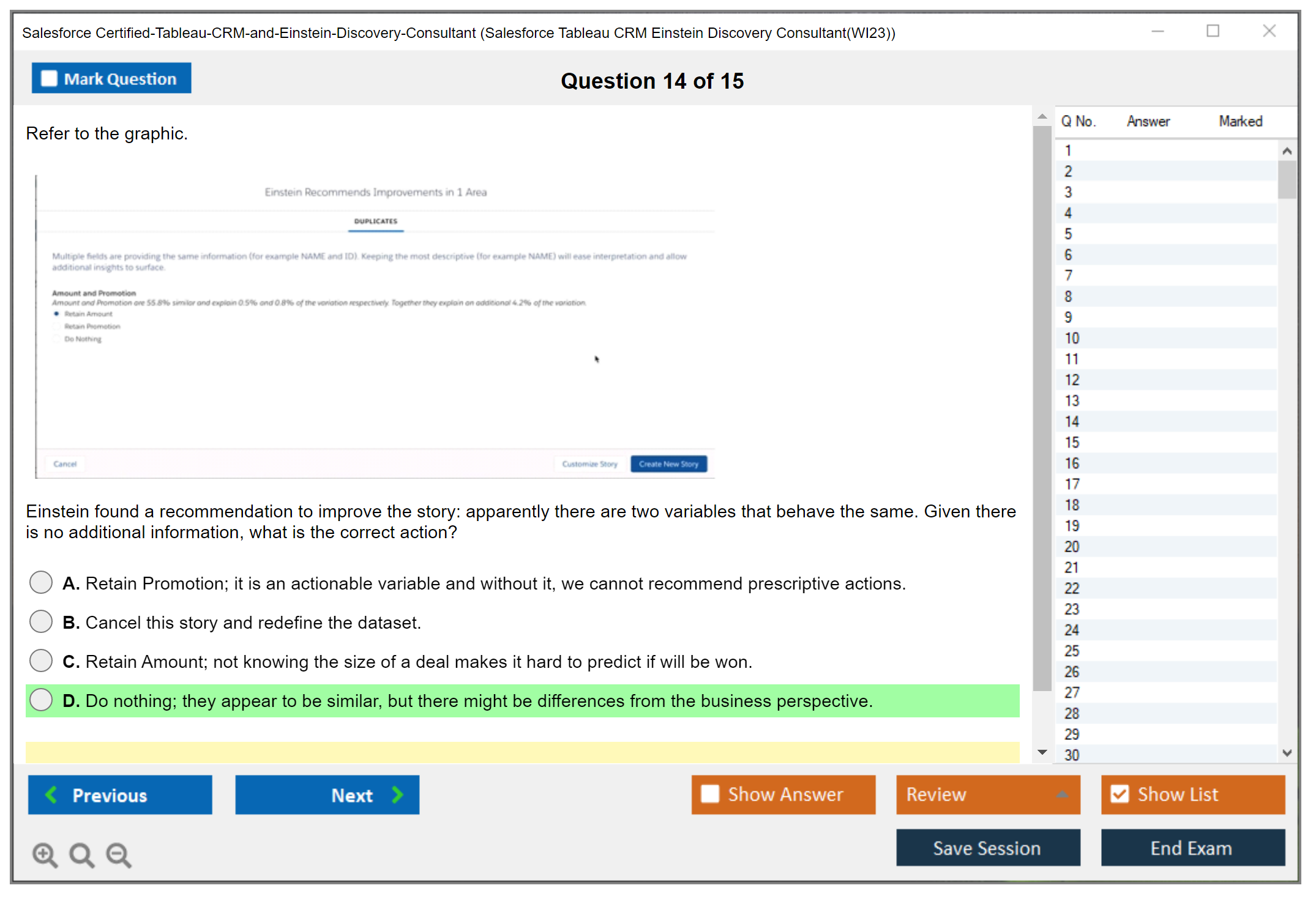 What are the Sample Questions of Salesforce Certified-Tableau-CRM-and-Einstein-Discovery-Consultant Exam?
