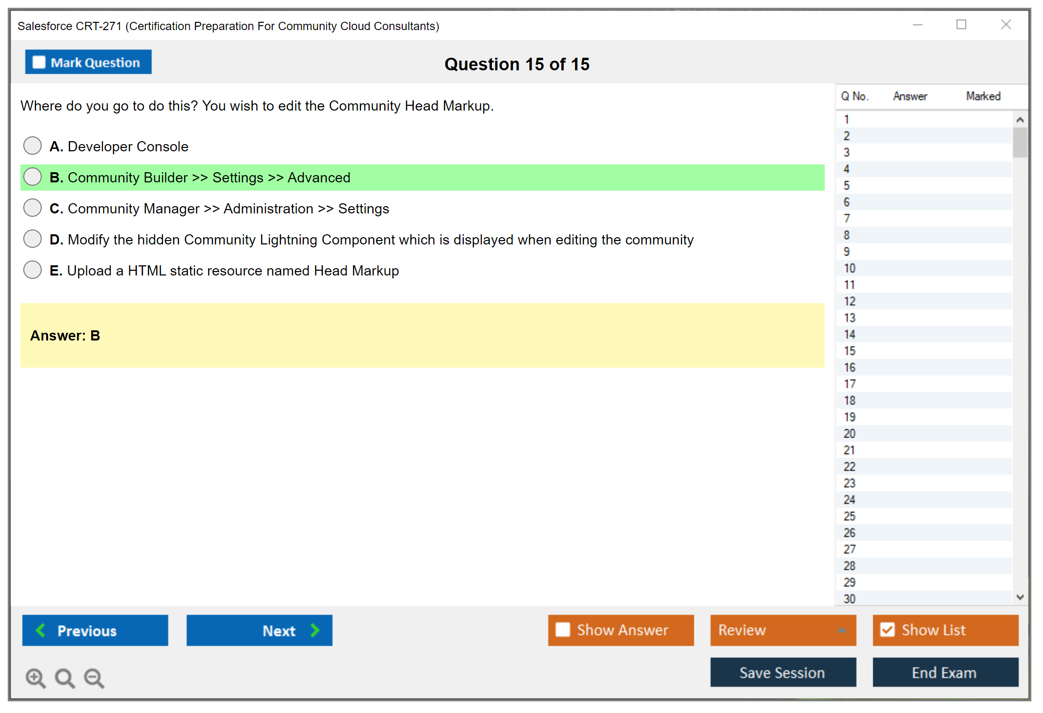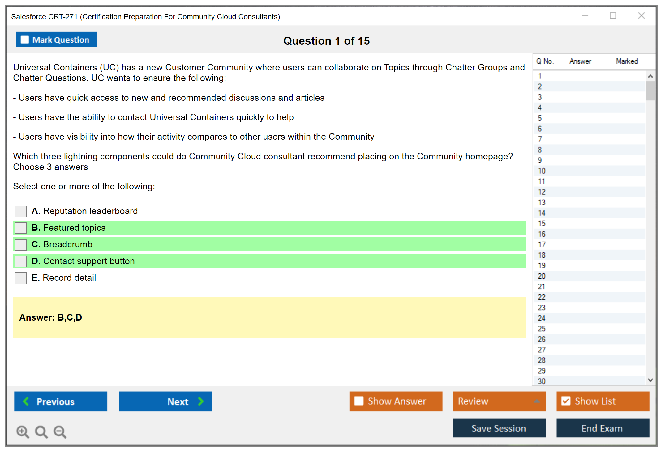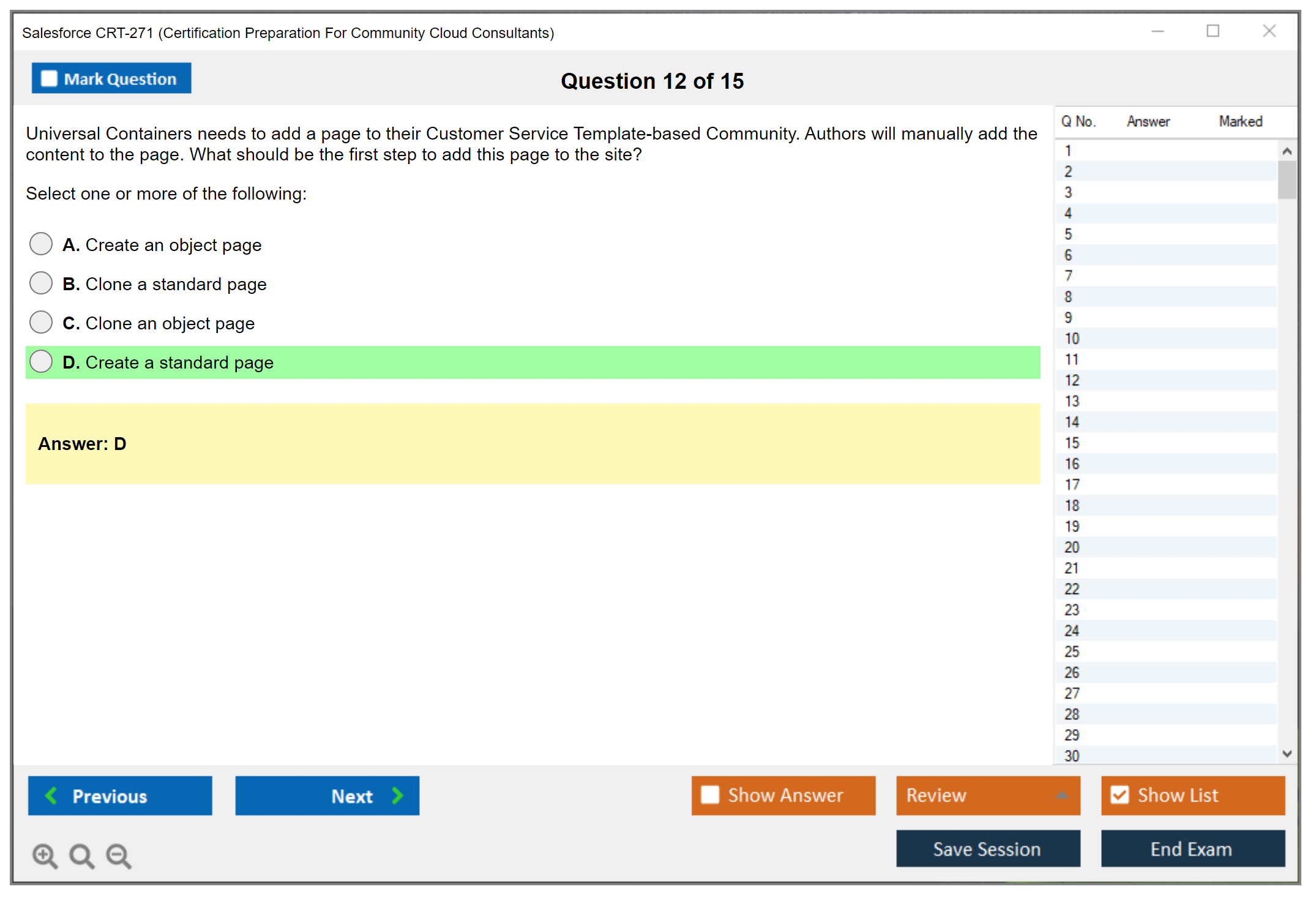 The Salesforce CRT-271 exam, also known as the Certification Preparation For Community Cloud Consultants, is designed to evaluate a candidate's knowledge and skills in implementing, configuring, and managing Salesforce Community Cloud applications.