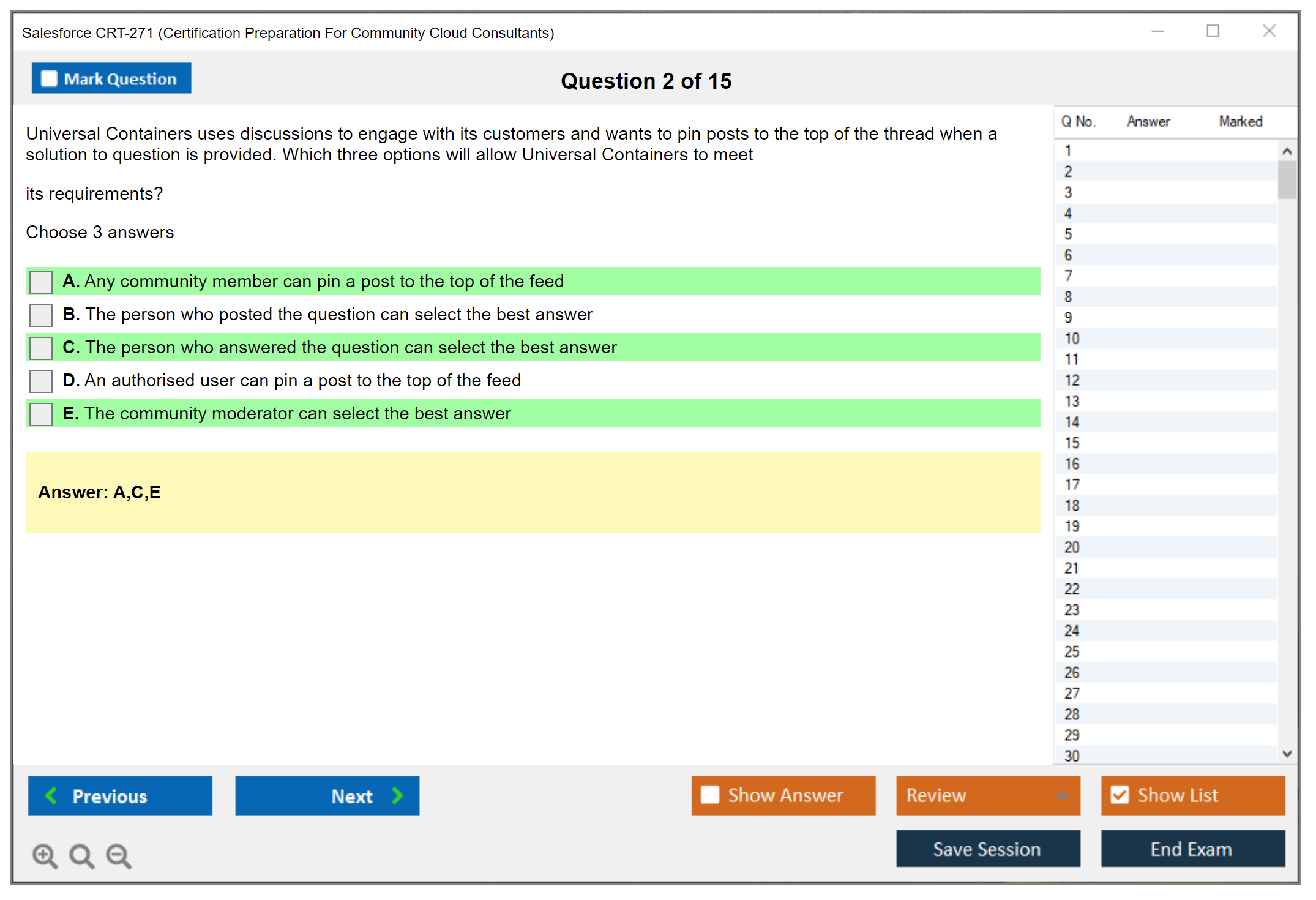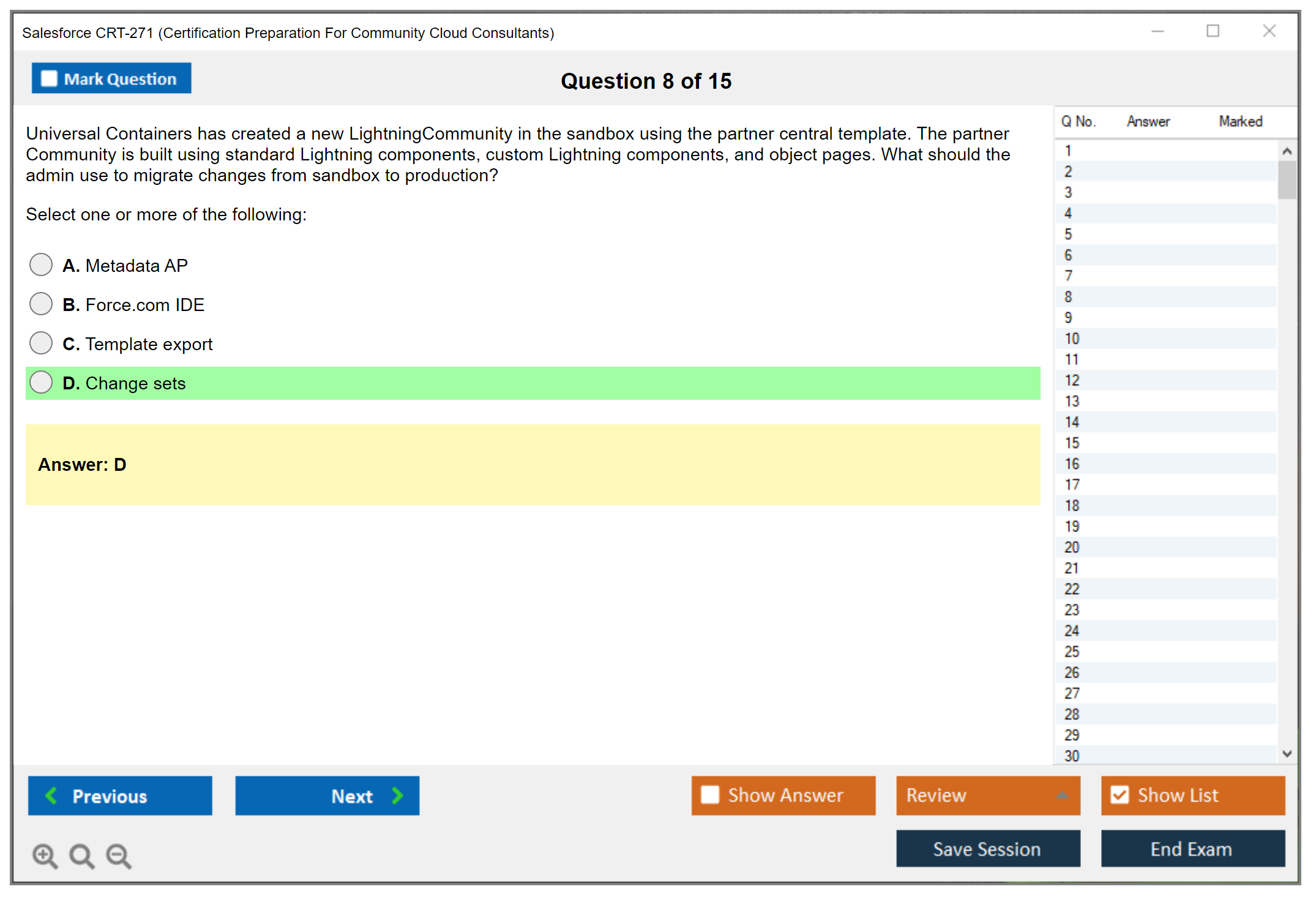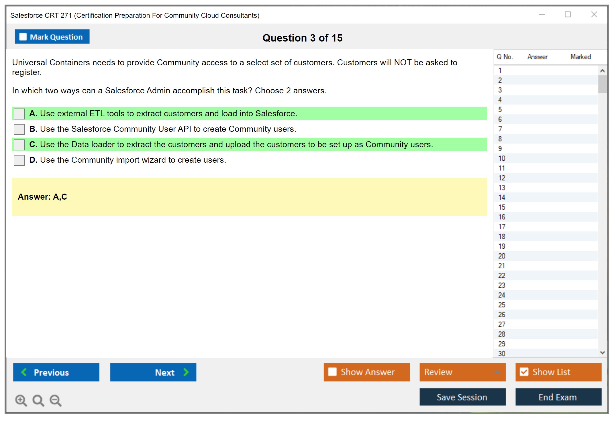 The Salesforce CRT-271 exam, also known as the Certification Preparation For Community Cloud Consultants, is designed to evaluate a candidate's knowledge and skills in implementing, configuring, and managing Salesforce Community Cloud applications.