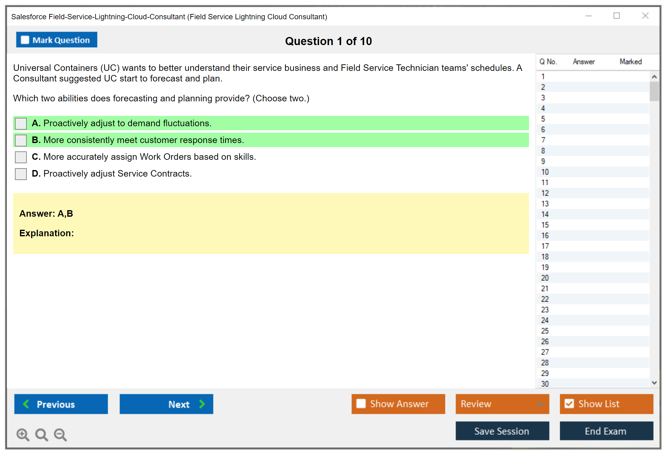 Sample questions for the Salesforce Field Service Lightning Cloud Consultant exam can be found in the exam guide provided by Salesforce and through various online resources and practice exams.