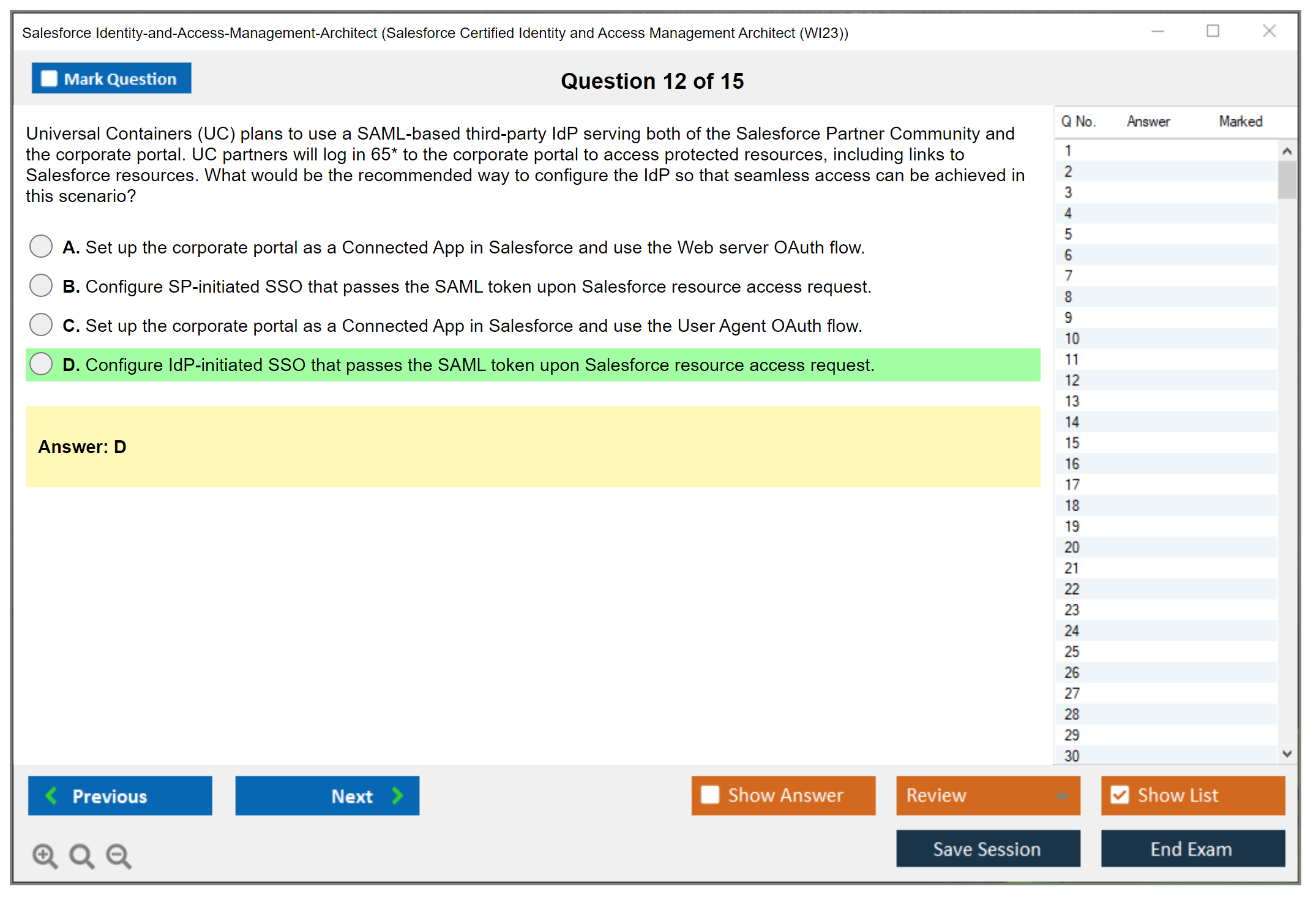 Sample questions for the Salesforce Identity-and-Access-Management-Architect Exam can be found on the official Salesforce certification website and through various study guides and practice exams available online.