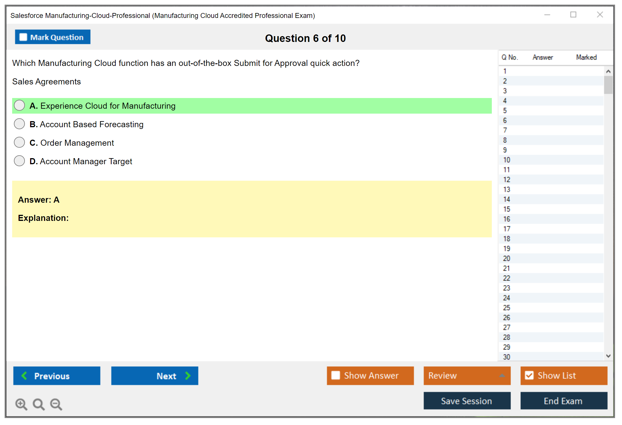 What are the Sample Questions of Salesforce Manufacturing-Cloud-Professional Exam?