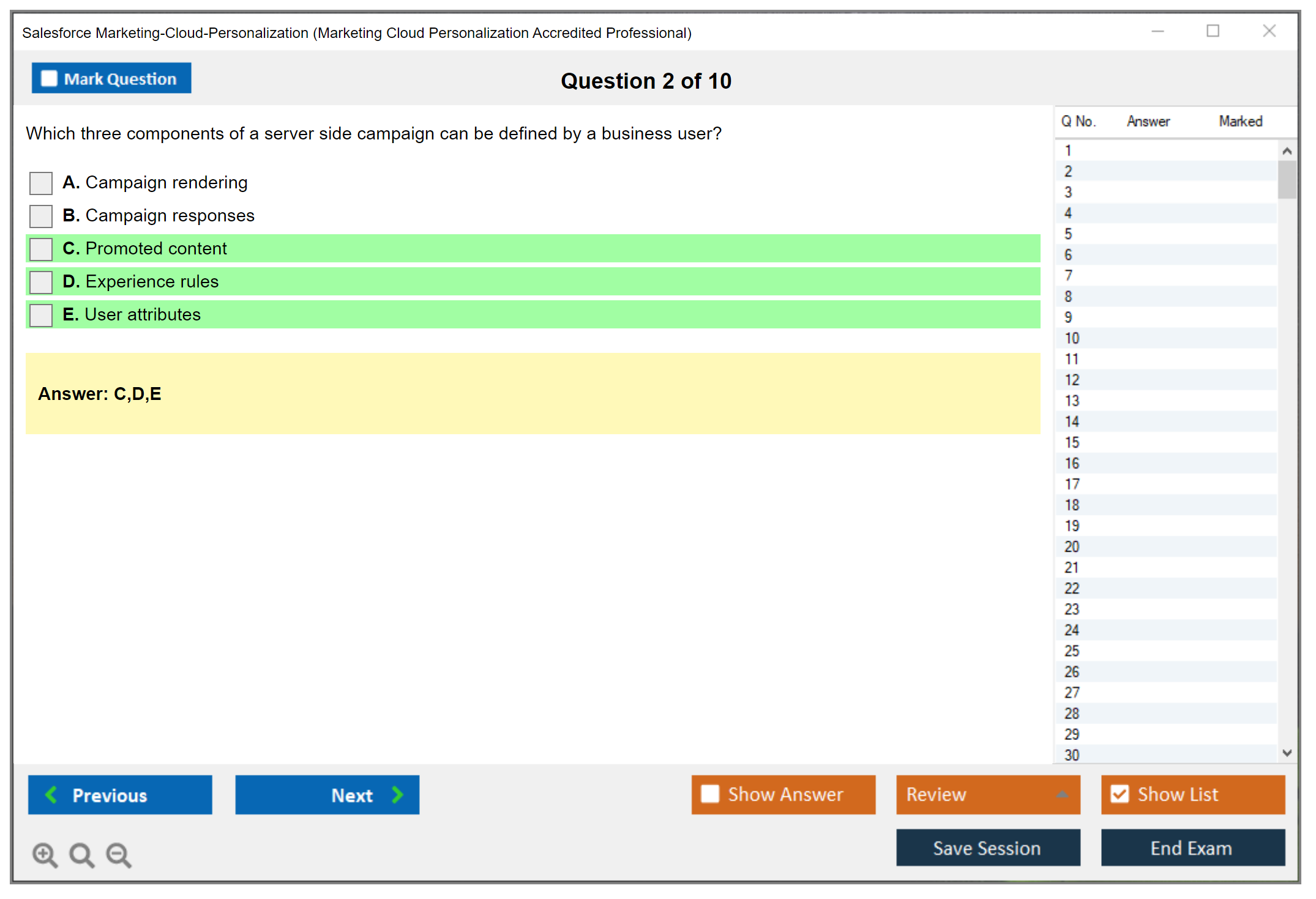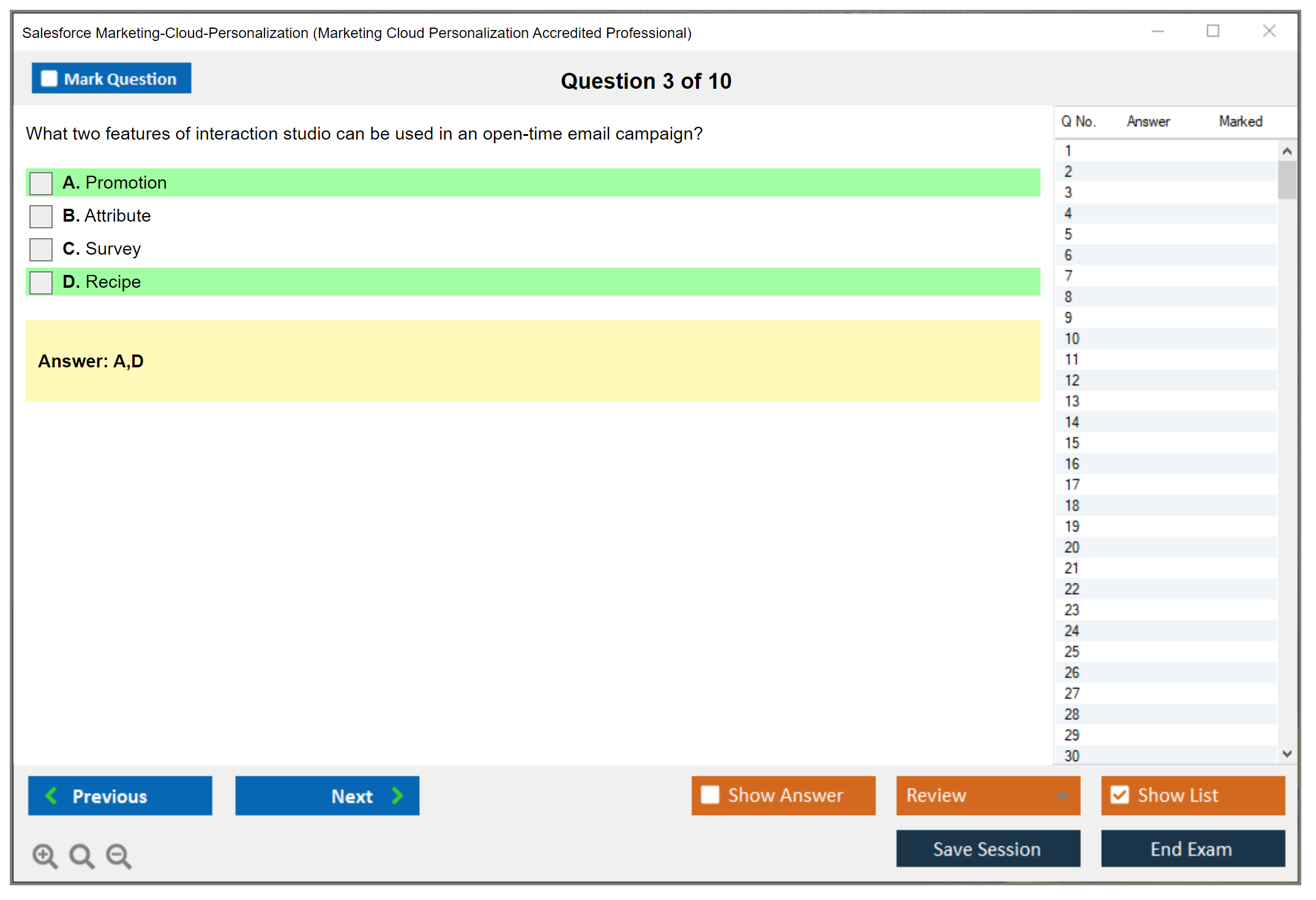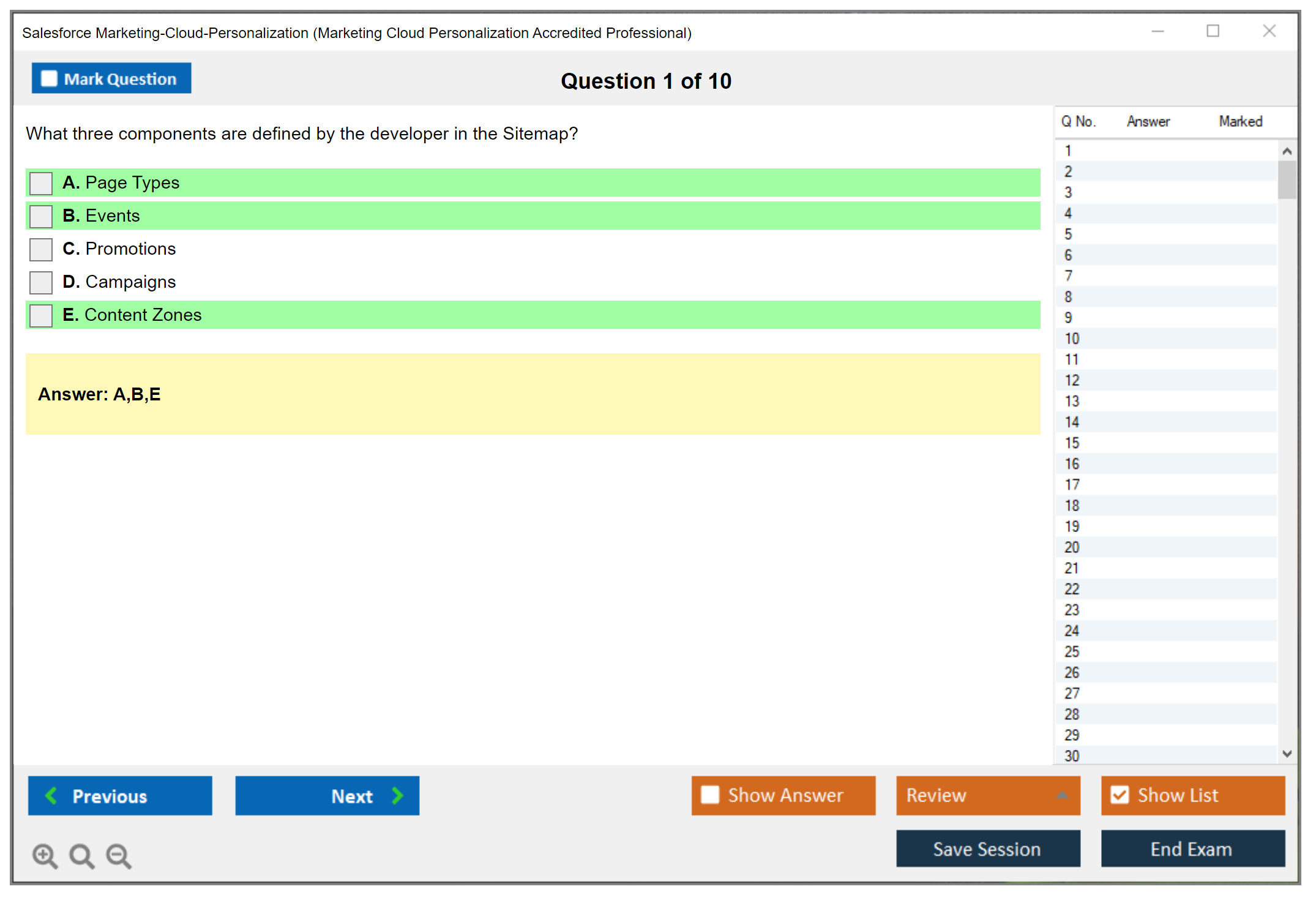 What are the Sample Questions of Salesforce Marketing-Cloud-Personalization Exam?