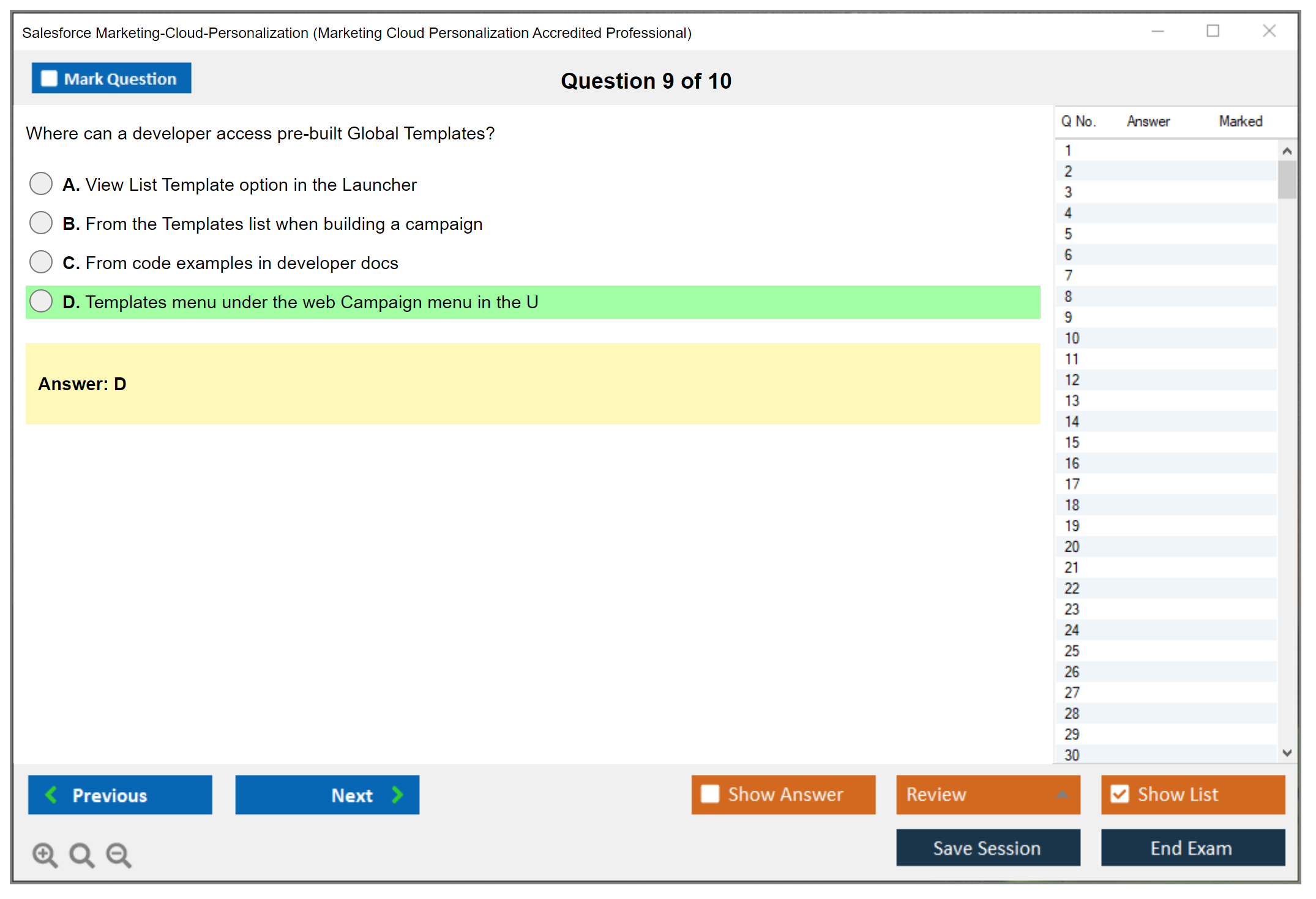 You can take the Salesforce Marketing-Cloud-Personalization Exam online through the Salesforce certification portal or at a designated testing center.