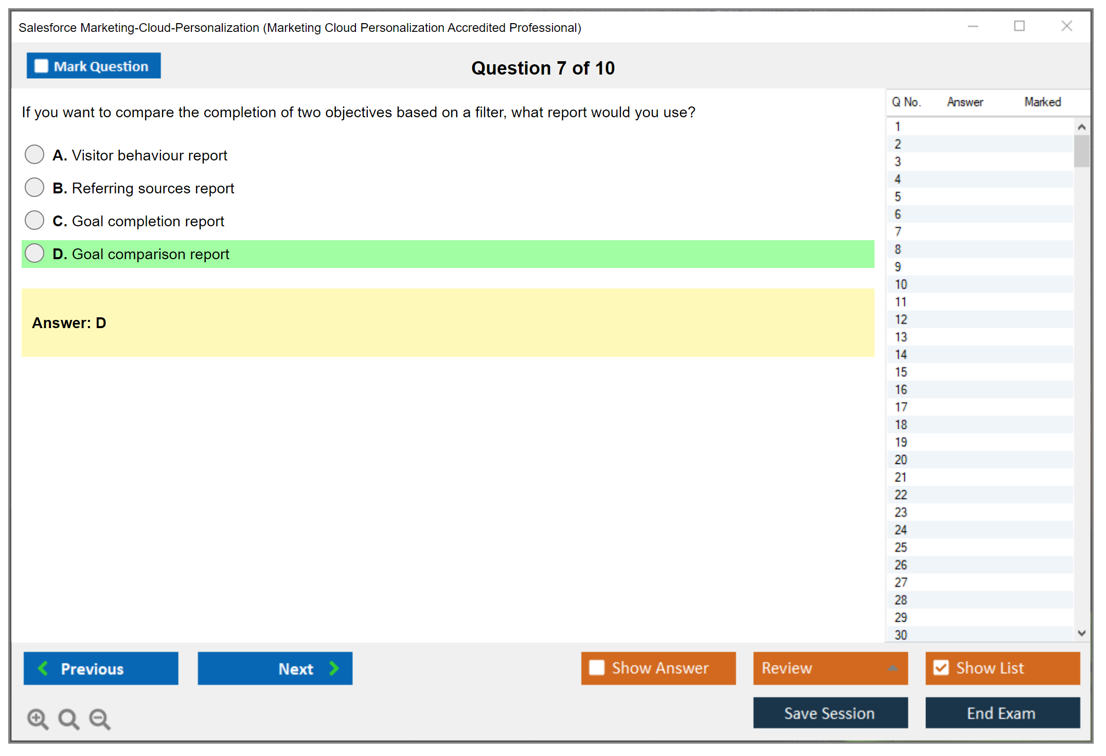 Sample questions for the Salesforce Marketing-Cloud-Personalization Exam can be found on the official Salesforce certification website or through various online study resources and practice exams.