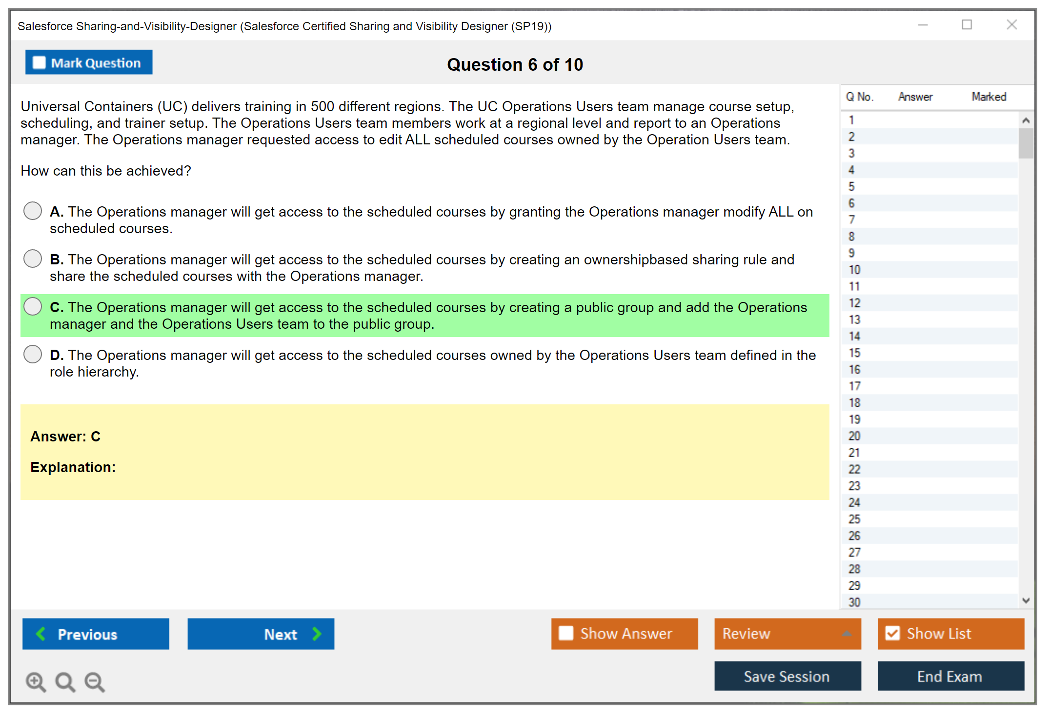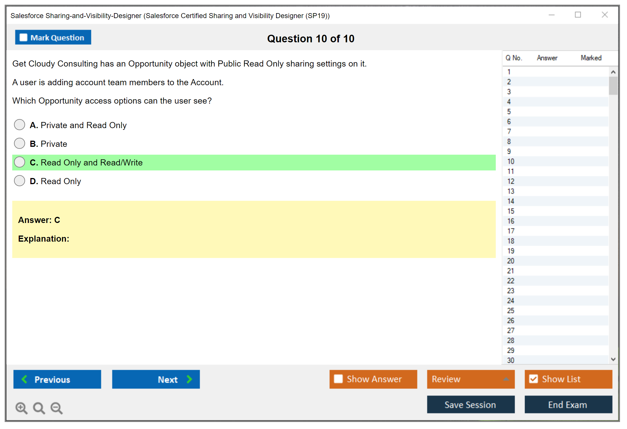 What are the Sample Questions of Salesforce Sharing-and-Visibility-Designer Exam?