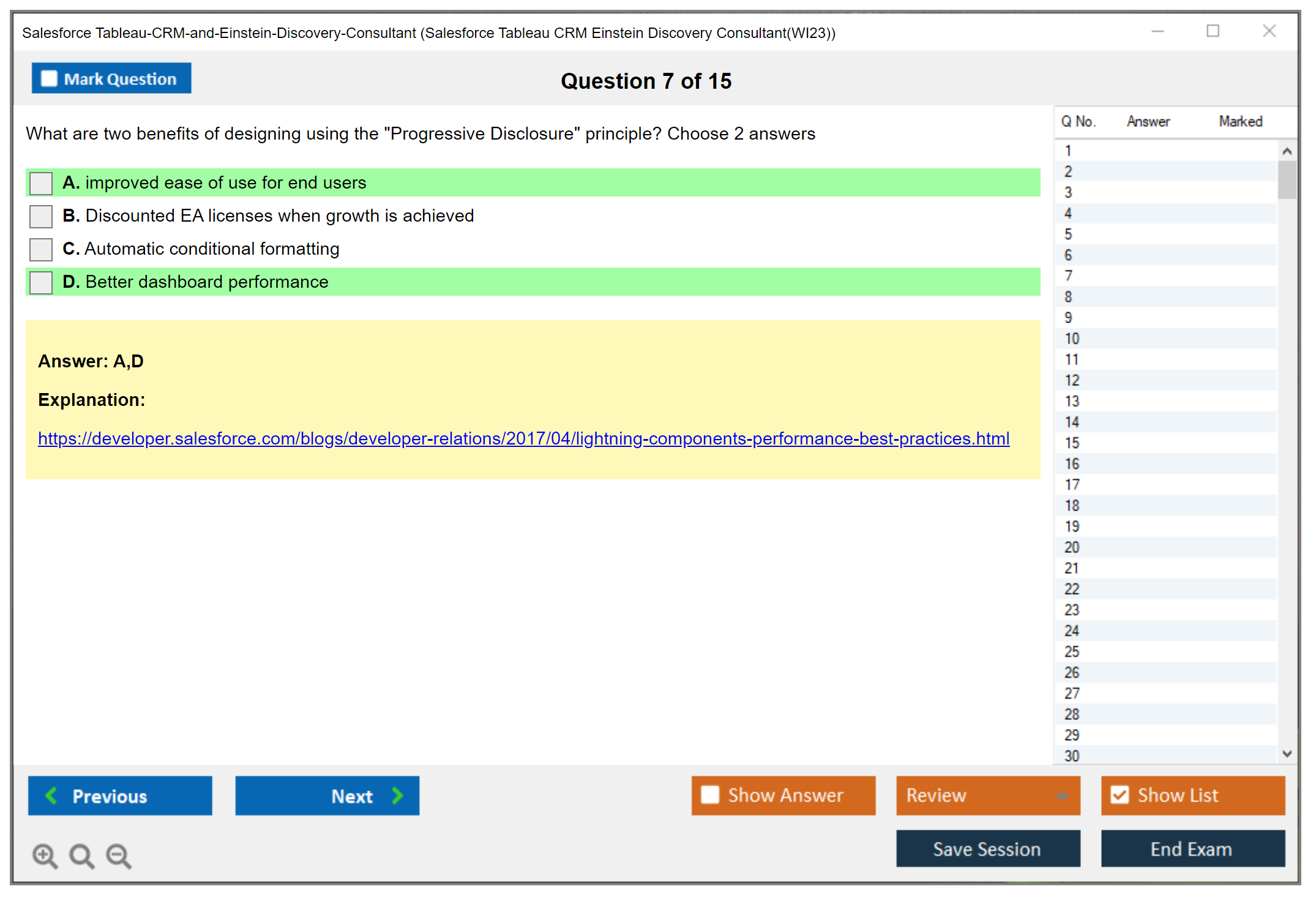 The question format of the Salesforce Tableau CRM and Einstein Discovery Consultant exam includes multiple-choice and multiple-select questions.