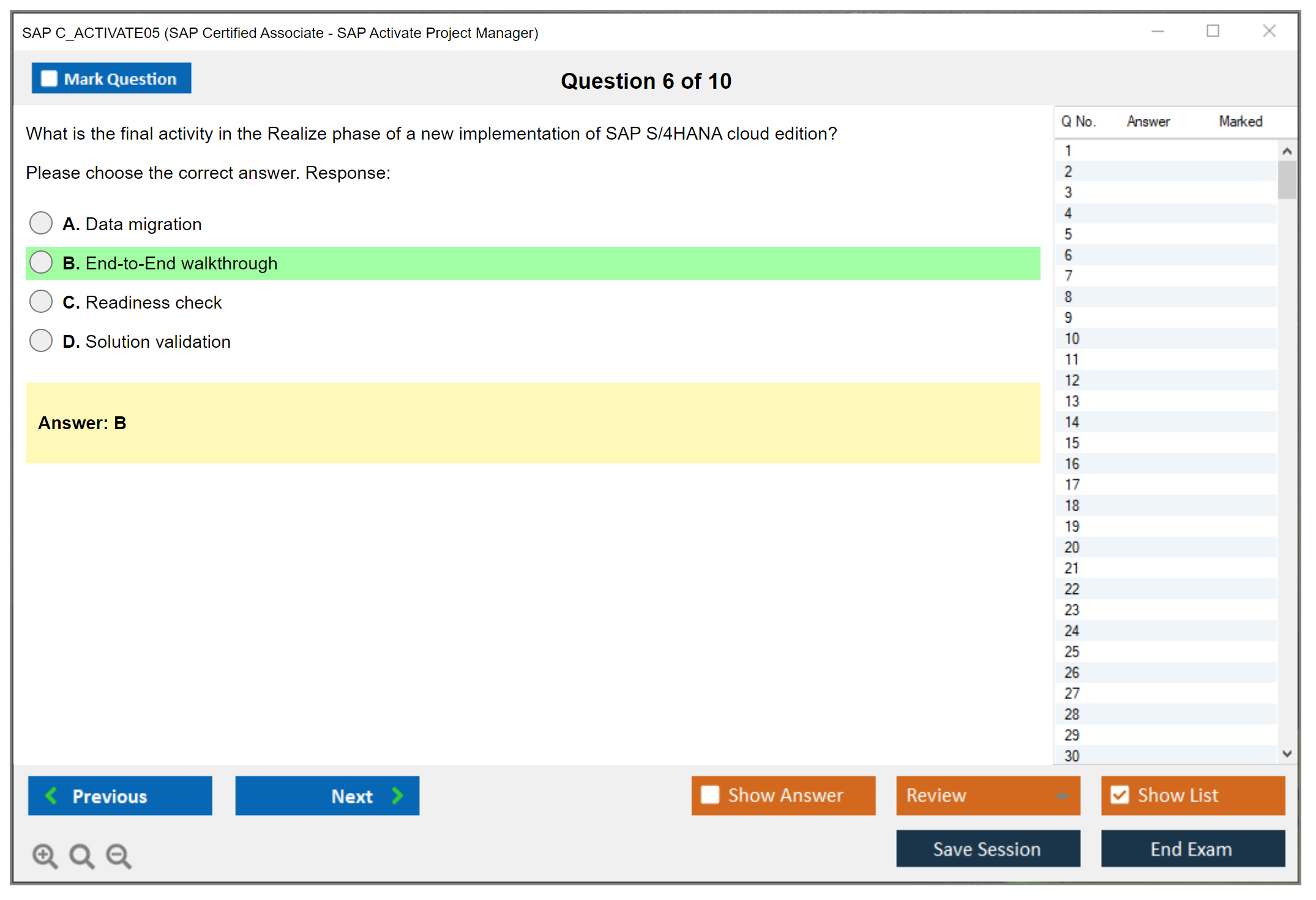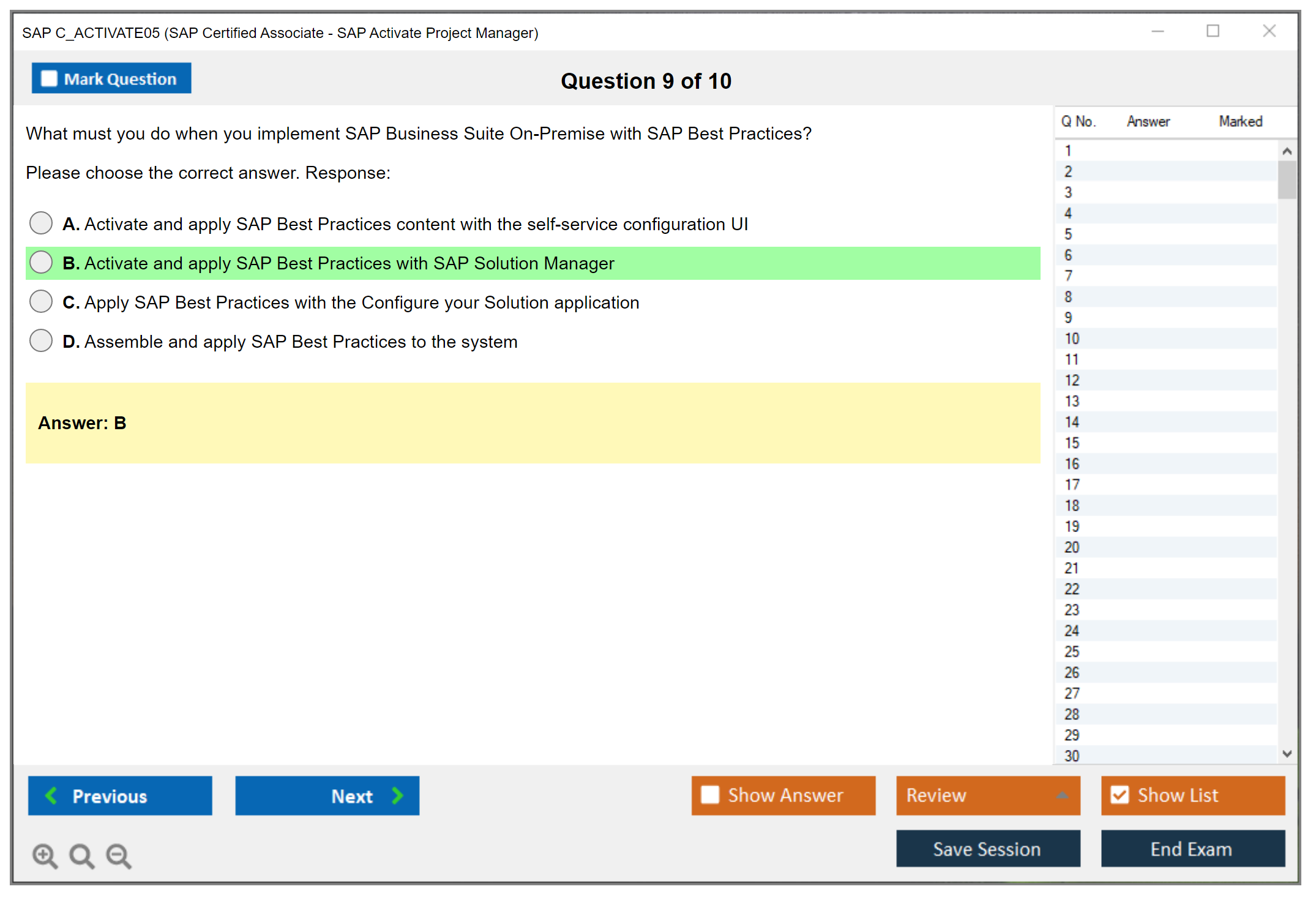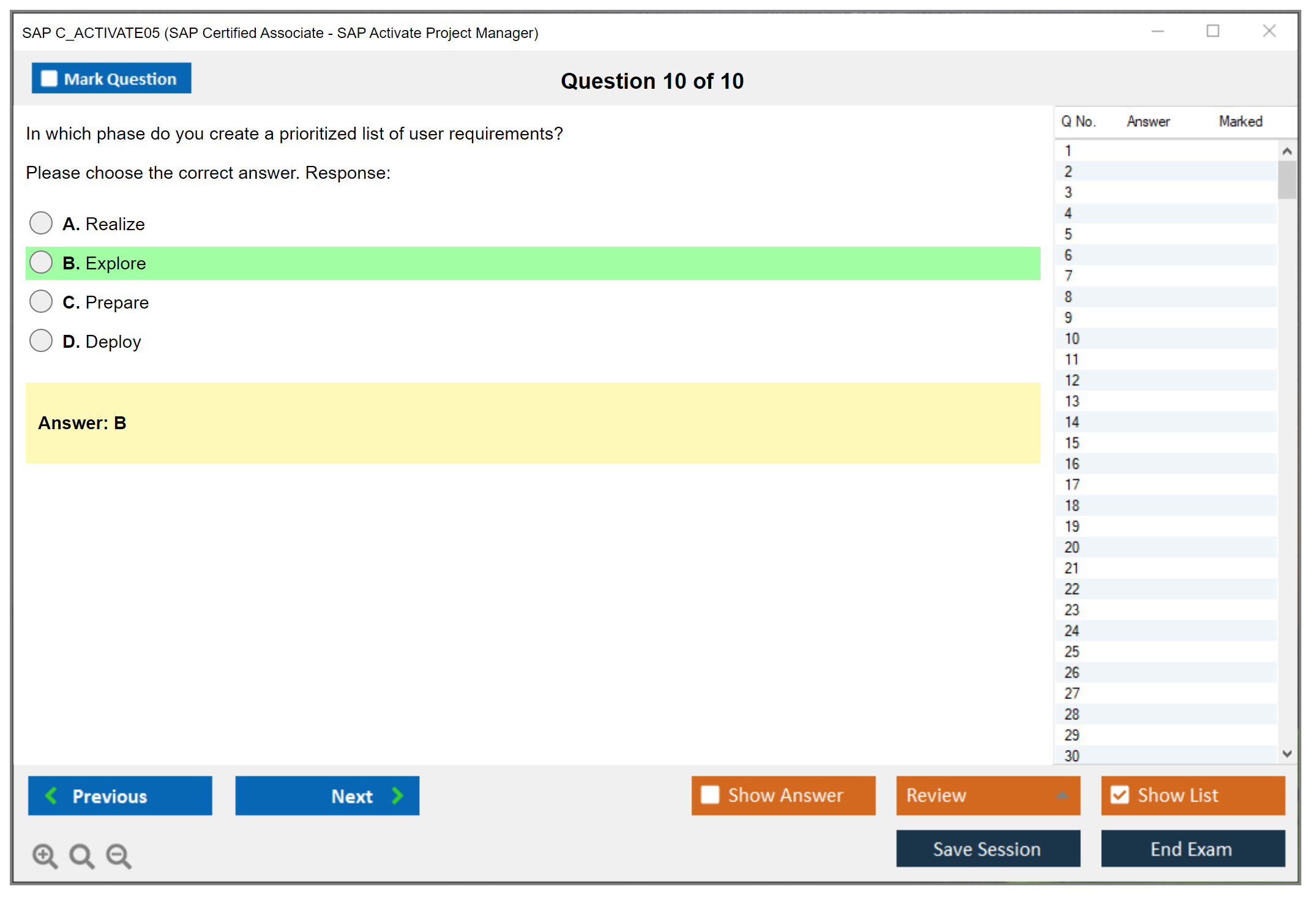 The SAP C_ACTIVATE05 (SAP Certified Associate - SAP Activate Project Manager) Exam is designed to validate the skills and knowledge of project managers who manage SAP projects using the SAP Activate methodology. This certification demonstrates a candidate's ability to apply the SAP Activate methodology, including Agile and Scrum techniques, to manage SAP projects effectively.