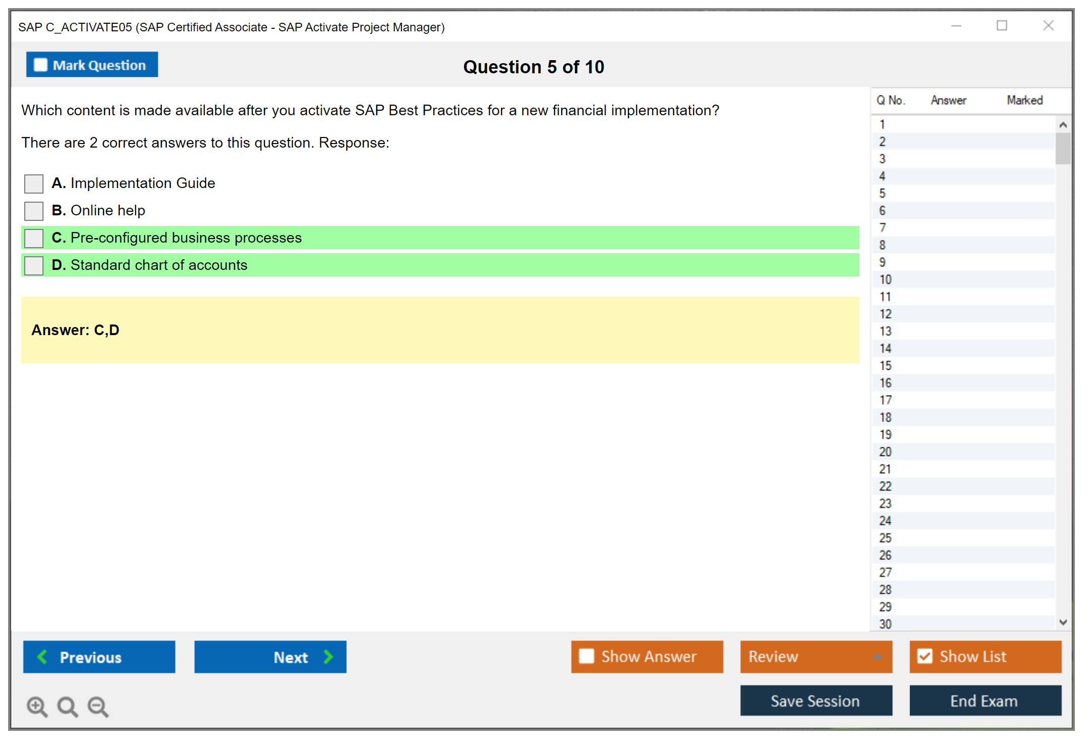 The question format of the SAP C_ACTIVATE05 Exam includes multiple-choice and multiple-response questions.