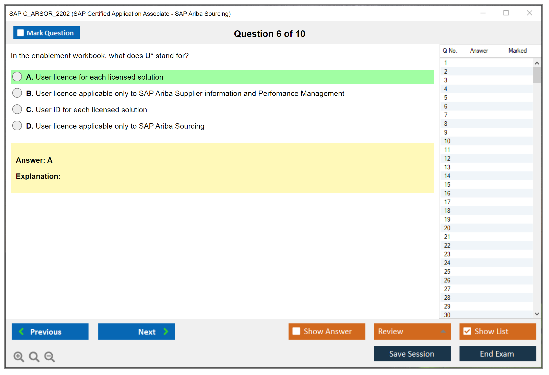 The SAP C_ARSOR_2202 (SAP Certified Application Associate - SAP Ariba Sourcing) exam validates that the candidate possesses the fundamental and core knowledge required for the SAP Ariba Sourcing Associate Application Consultant profile. This certification proves that the candidate has an overall understanding and in-depth technical skills to participate as a member of a project team in a mentored role.