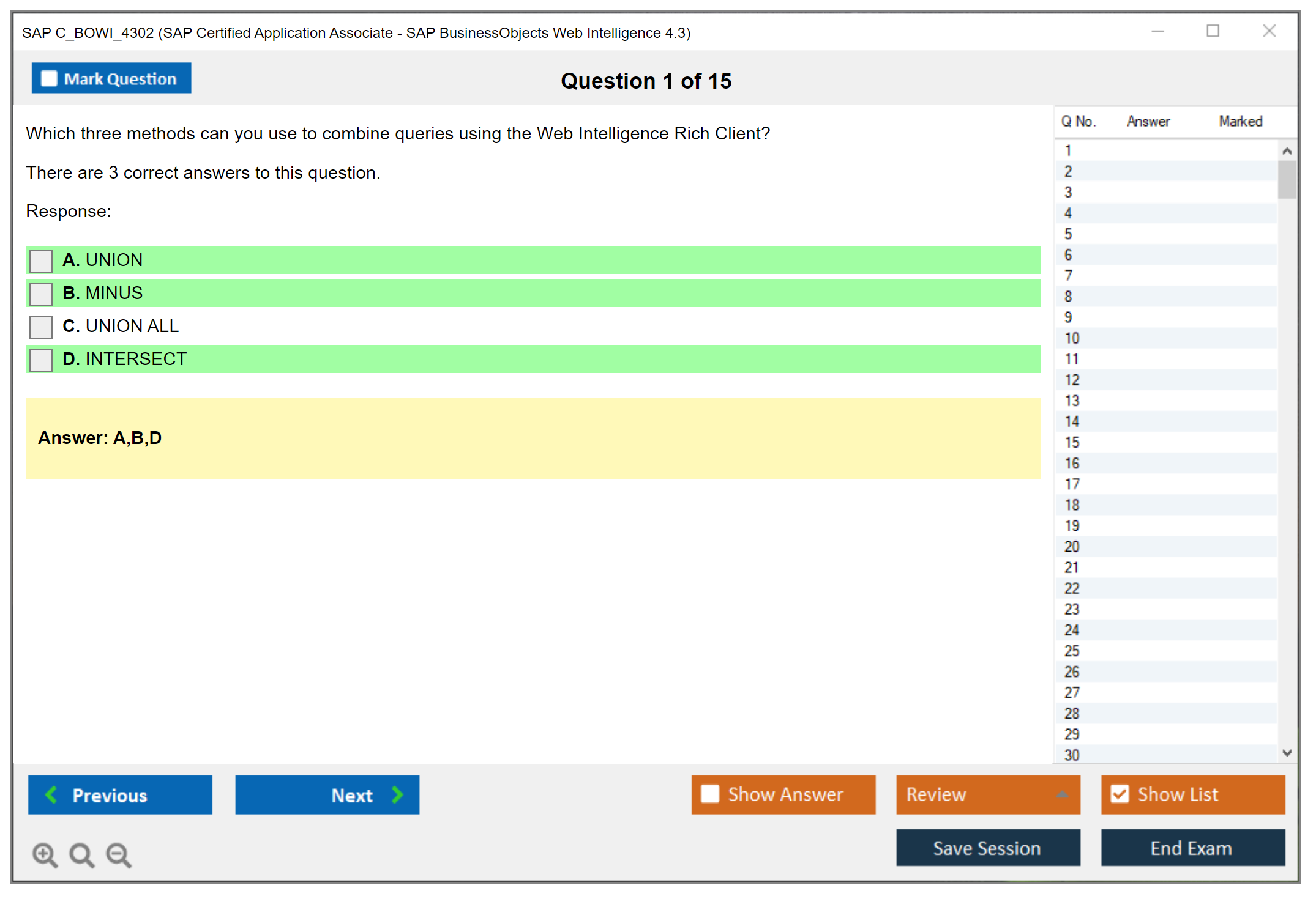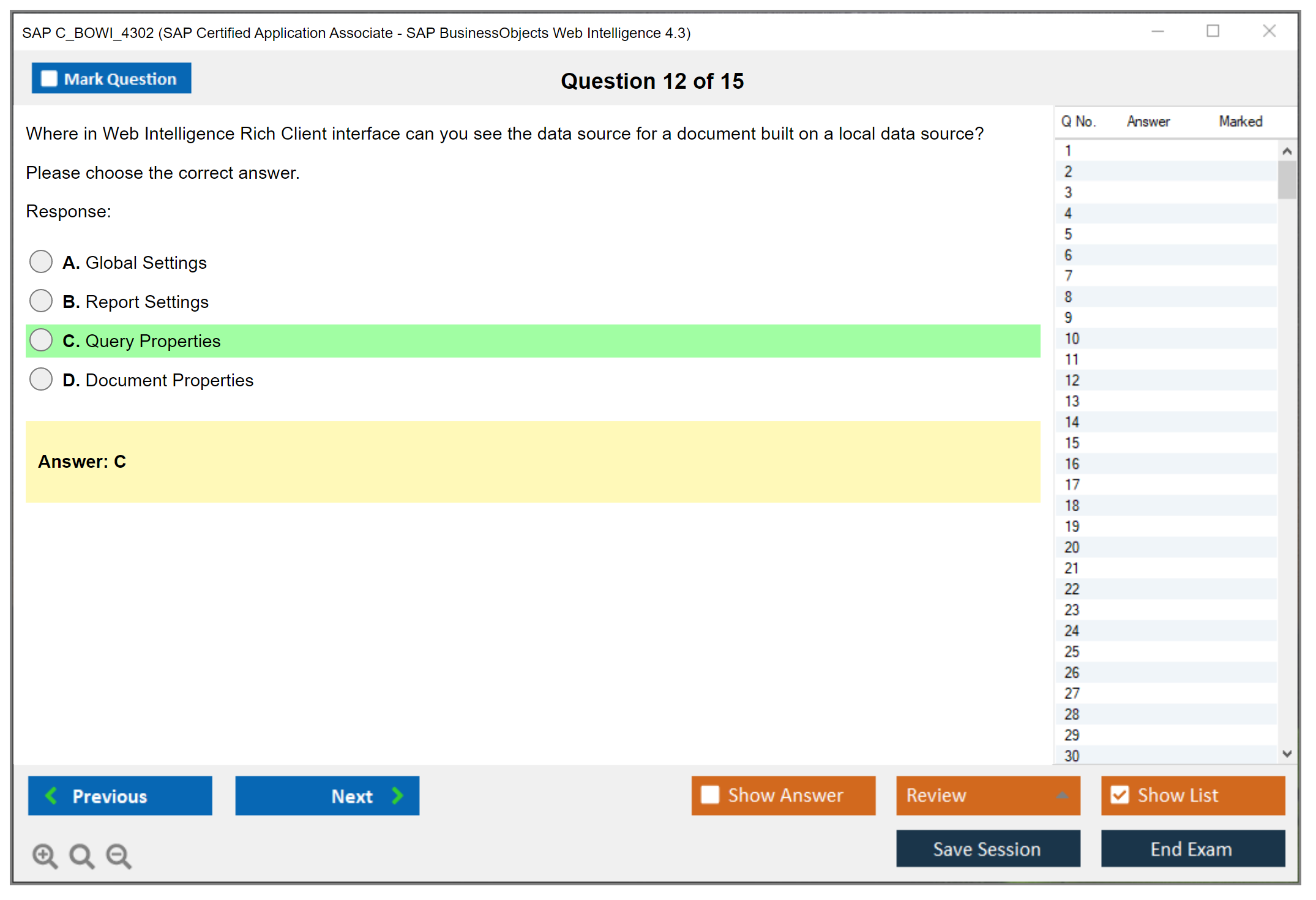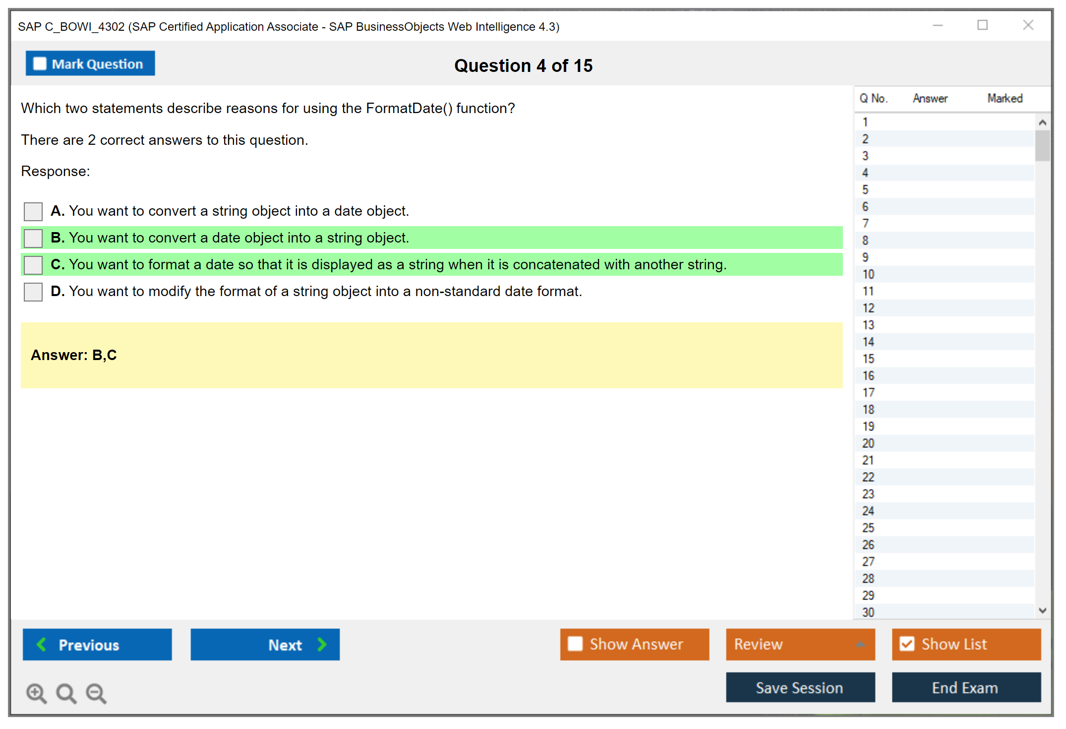 The SAP C_BOWI_4302 exam is an associate-level certification that tests the candidate's knowledge and proficiency in using SAP BusinessObjects Web Intelligence 4.3. This certification helps professionals demonstrate their ability to create, manage, and distribute reports using the Web Intelligence tool.