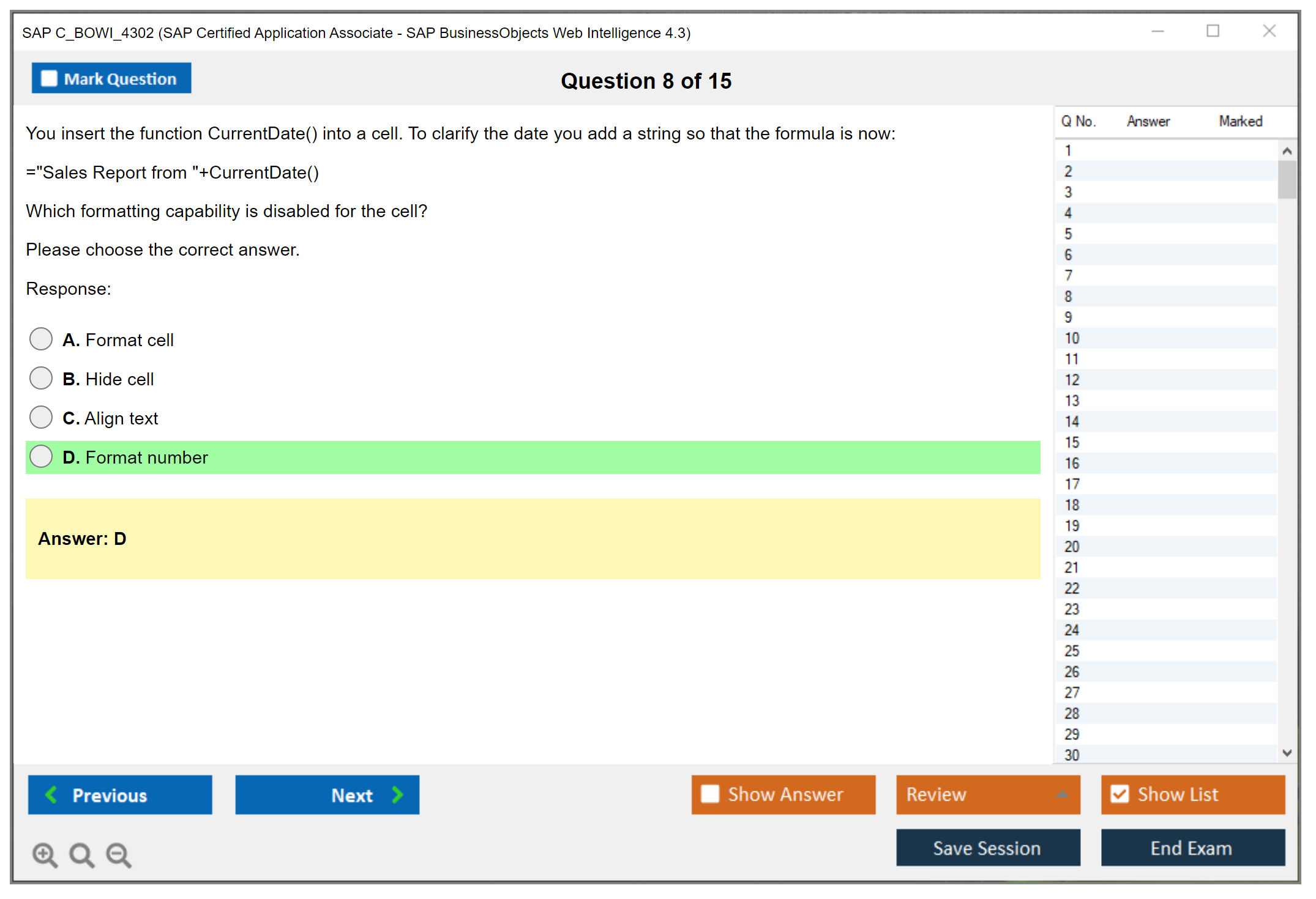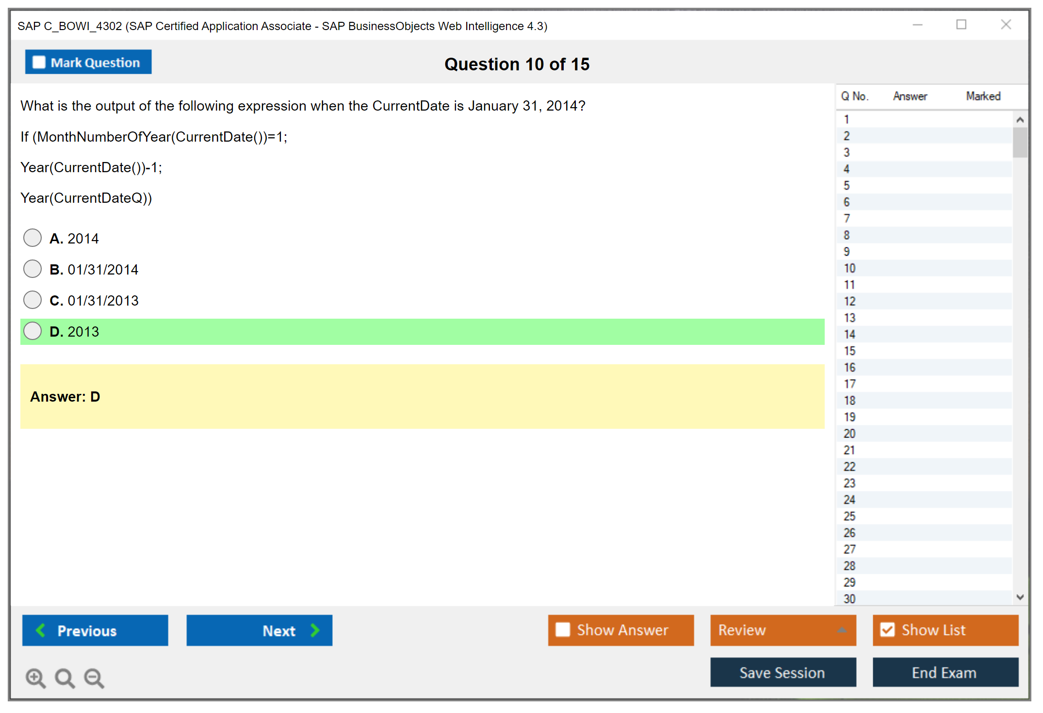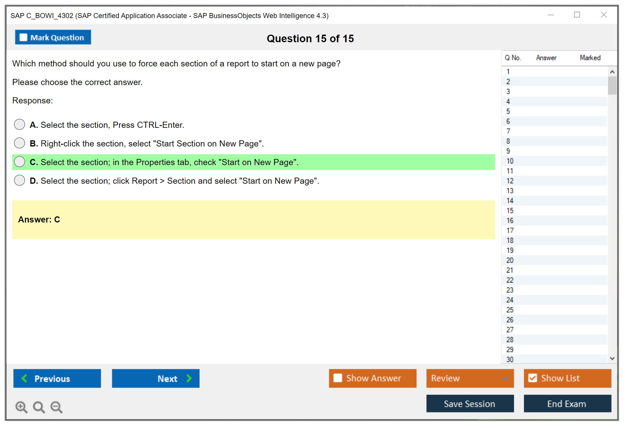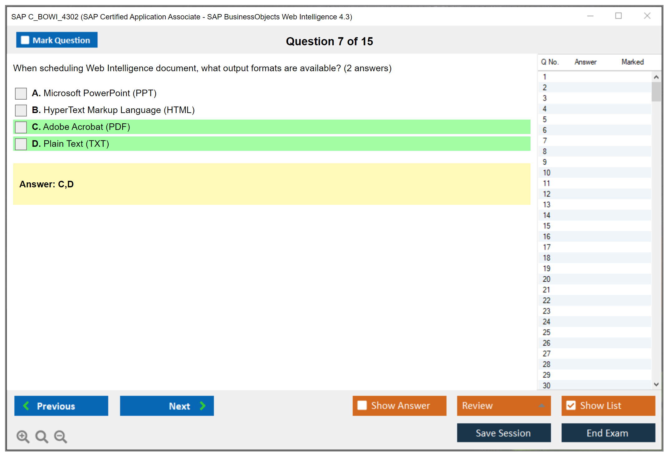 The SAP C_BOWI_4302 exam is an associate-level certification that tests the candidate's knowledge and proficiency in using SAP BusinessObjects Web Intelligence 4.3. This certification helps professionals demonstrate their ability to create, manage, and distribute reports using the Web Intelligence tool.