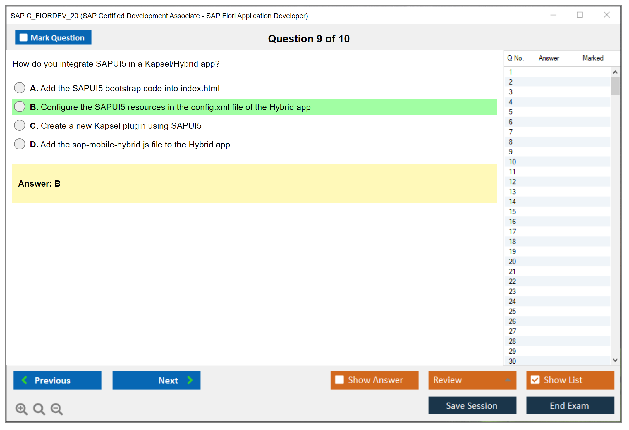 The SAP C_FIORDEV_20 Exam is a certification exam for developers who want to validate their skills in developing SAP Fiori applications. It assesses the candidate's ability to use SAP Fiori tools and methodologies, develop SAP Fiori applications using SAPUI5, and configure the SAP Fiori launchpad.