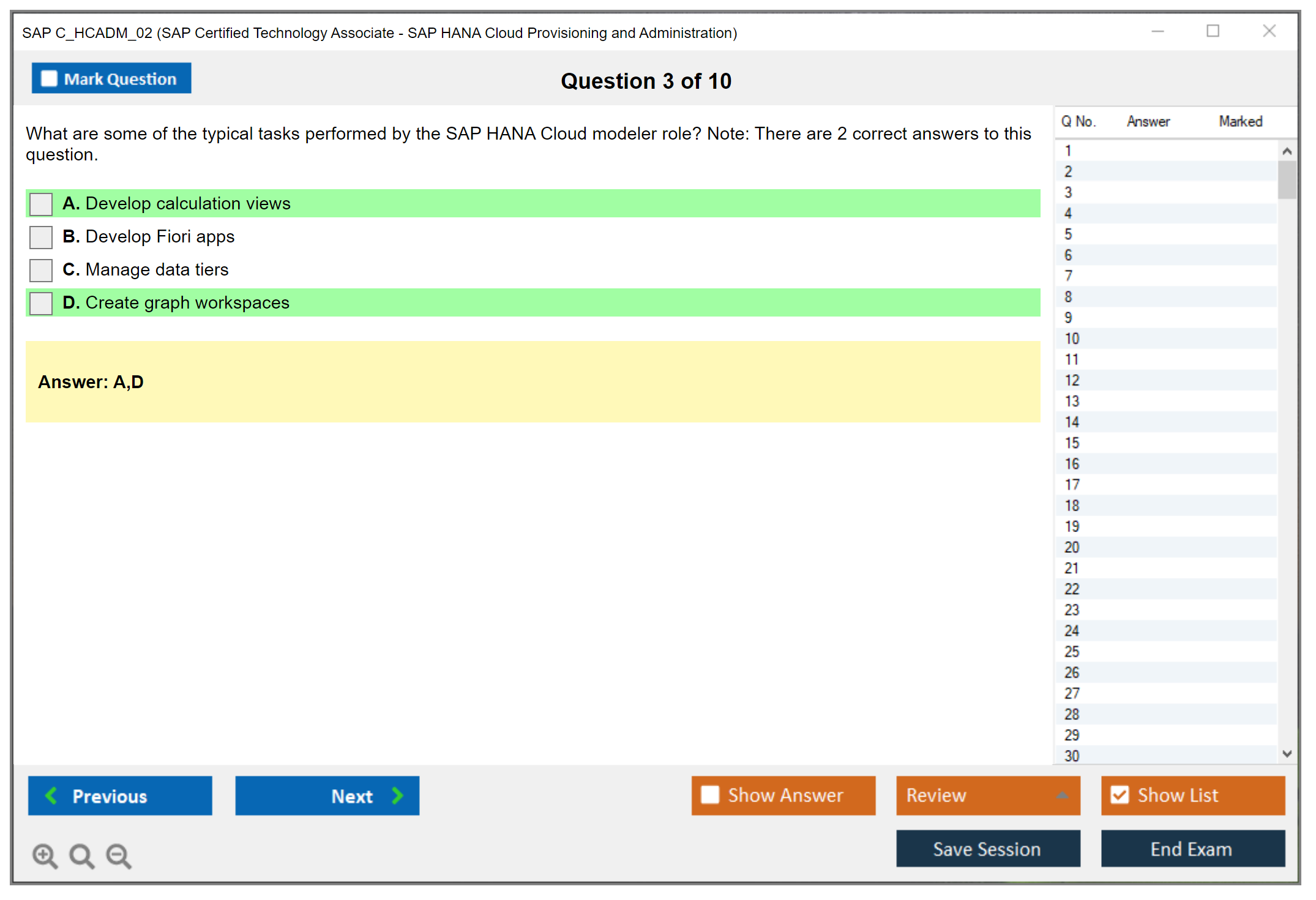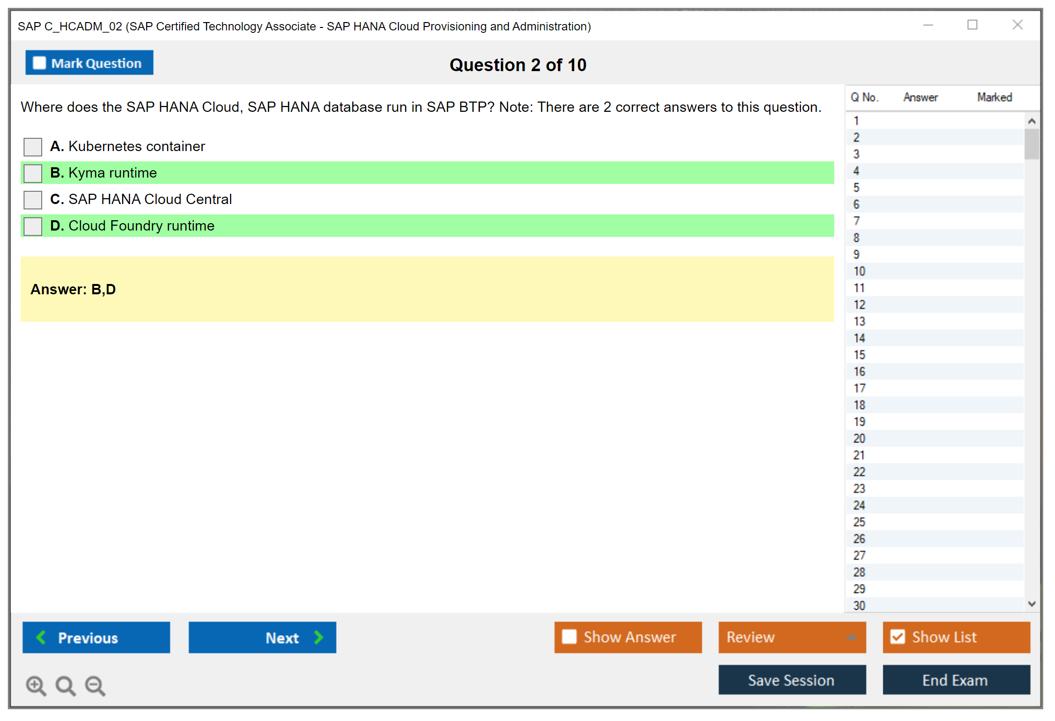 The SAP C_HCADM_02 Exam covers topics such as SAP HANA Cloud architecture, provisioning, configuration, monitoring, security, and troubleshooting.