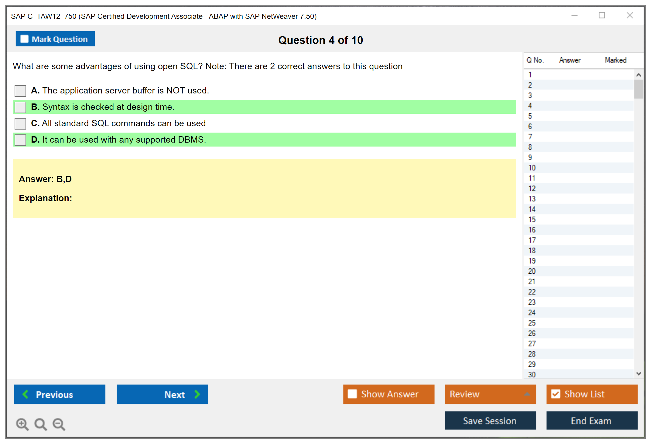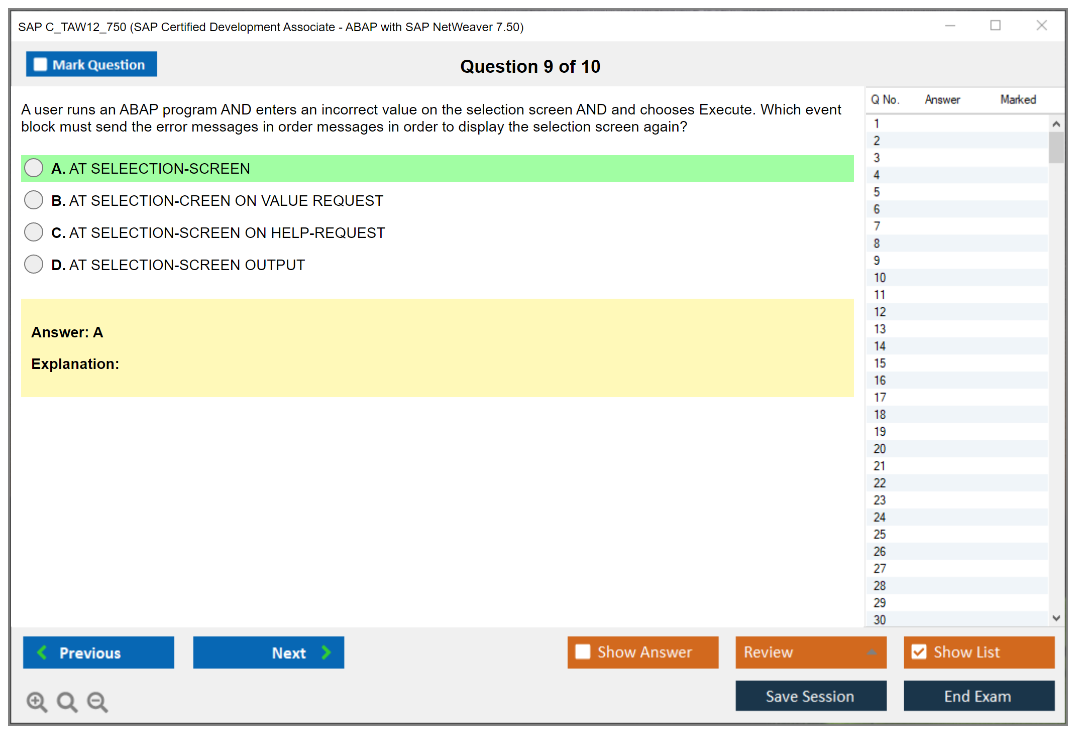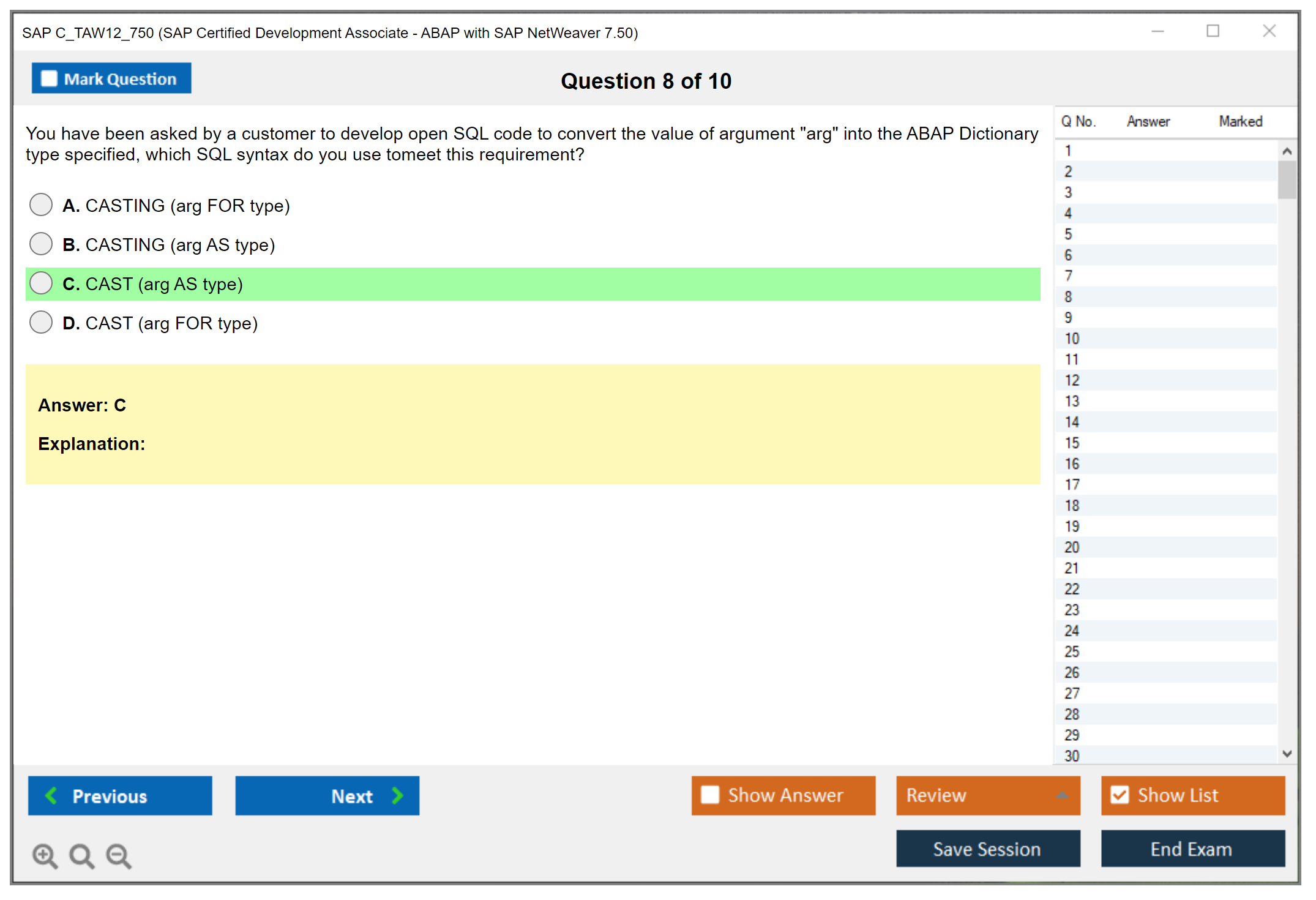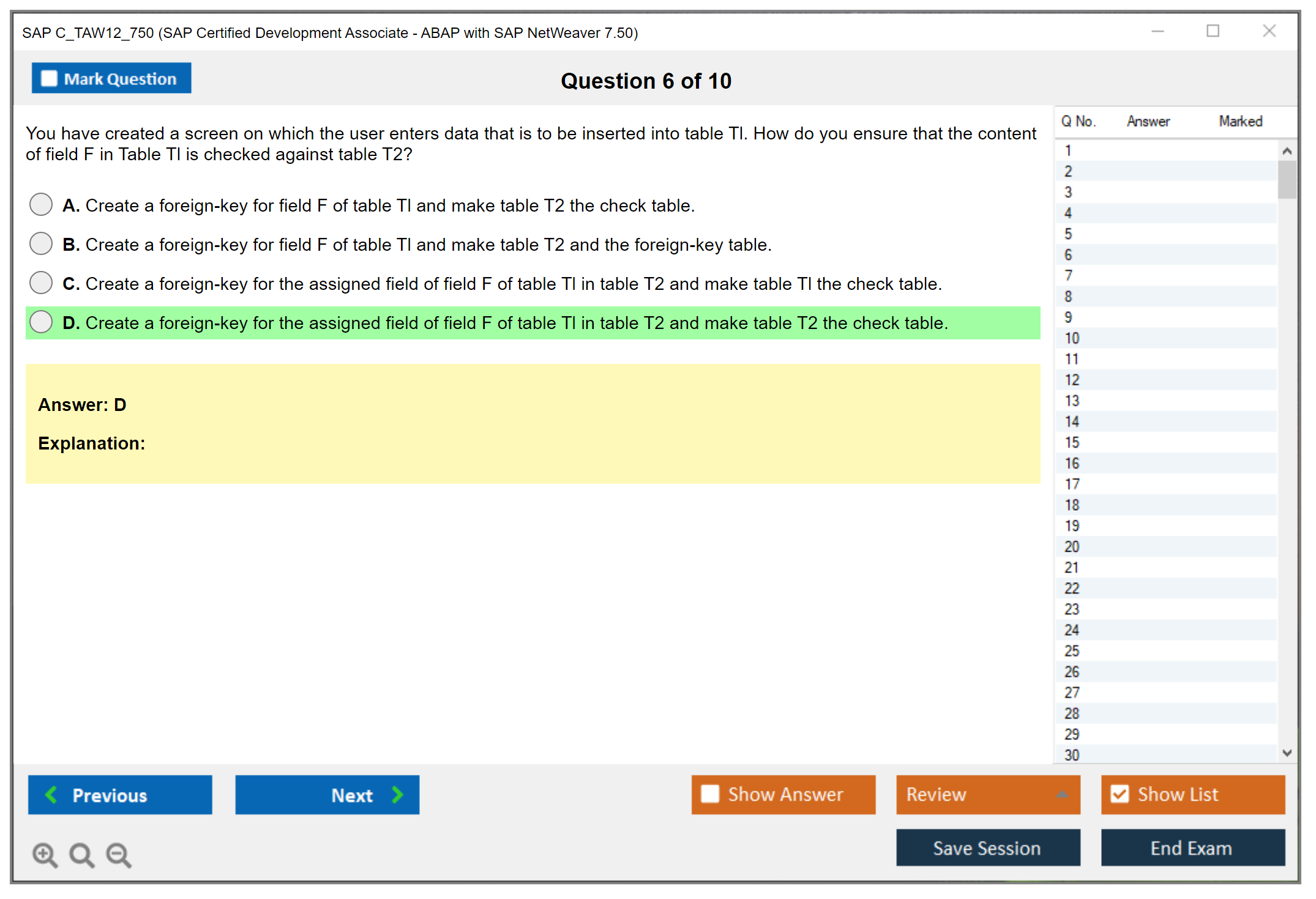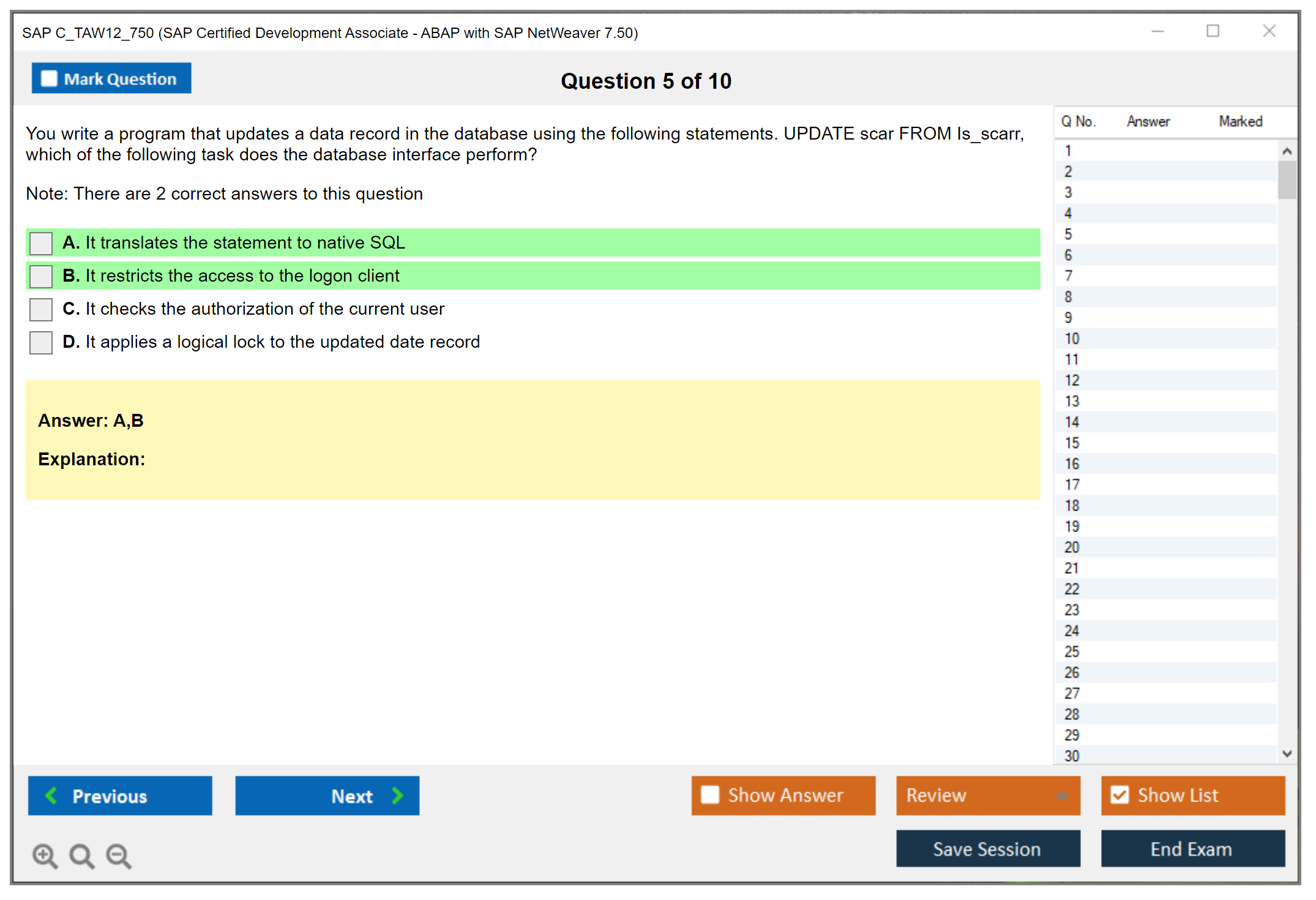 The SAP C_TAW12_750 exam is designed to test the candidate's understanding and ability to work with ABAP programming language in the SAP NetWeaver 7.50 environment. It covers various aspects of ABAP development, including syntax, tools, and best practices.