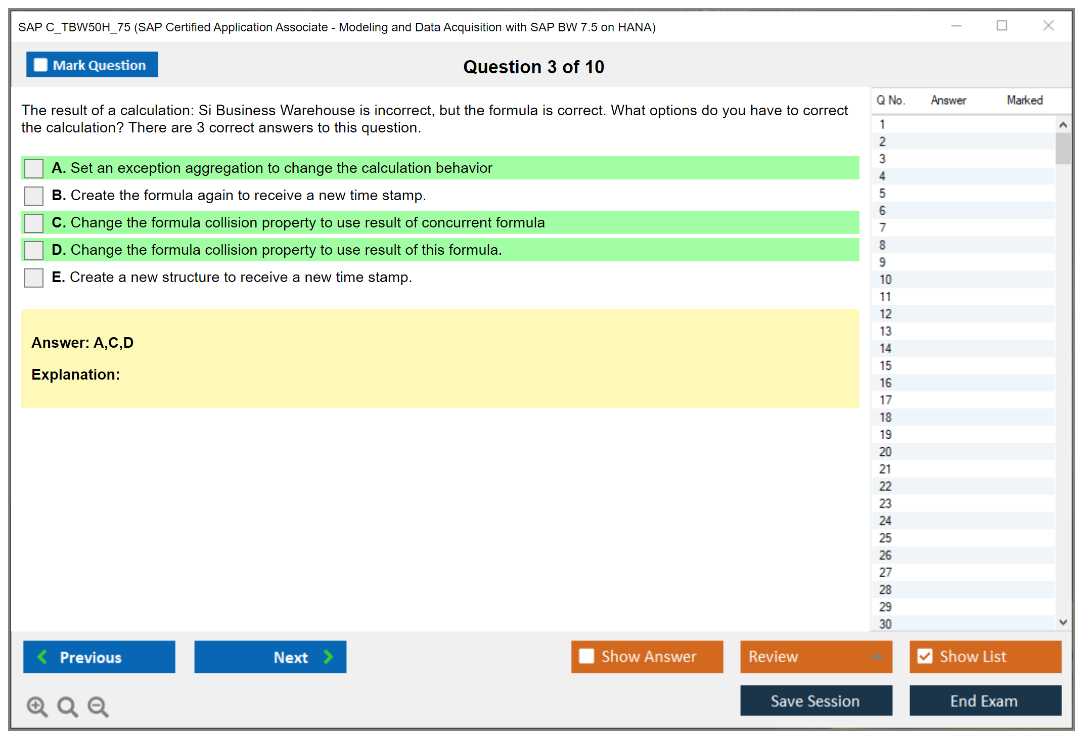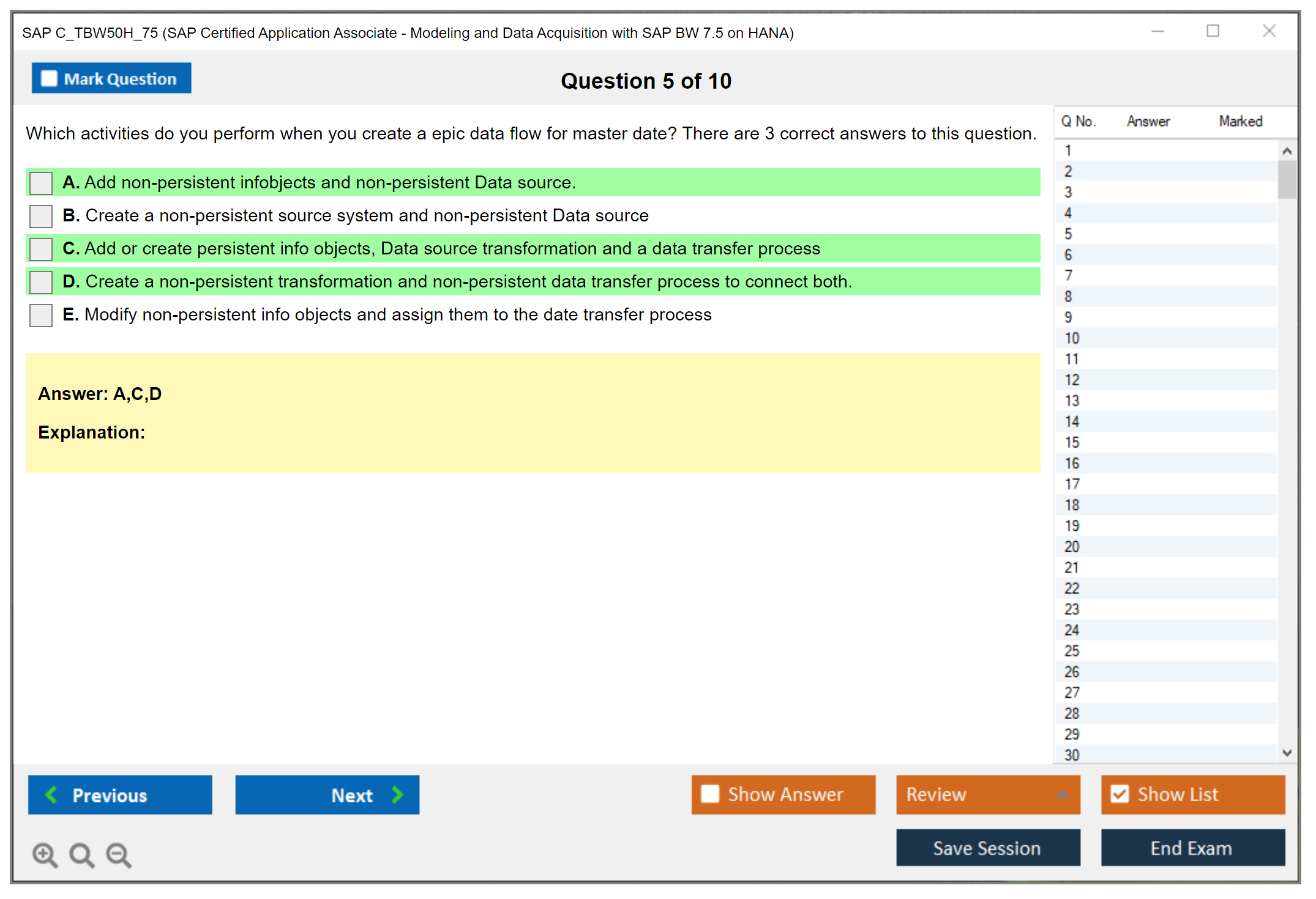 What are the Sample Questions of SAP C_TBW50H_75 Exam?